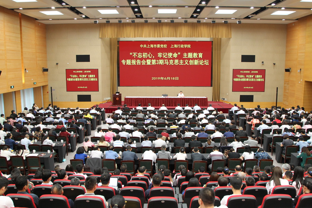 本网讯 6月18日上午,校院举行“不忘初心、牢记使命”主题教育专题报告会暨第3期马克思主义创新论坛,原中共中央党史研究室副主任李忠杰教授应邀作“中国共产党人的初心和使命”主题报告。常务副校院长、校院“不忘初心、牢记使命”主题教育领导小组组长沈炜主持报告会,全校院400余名党员参加。