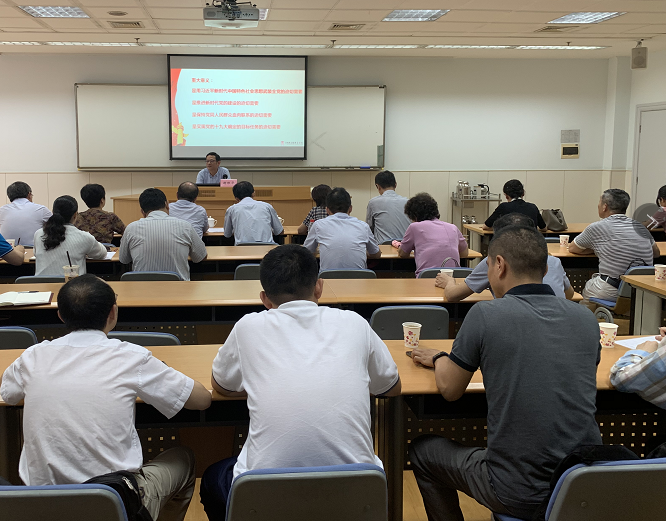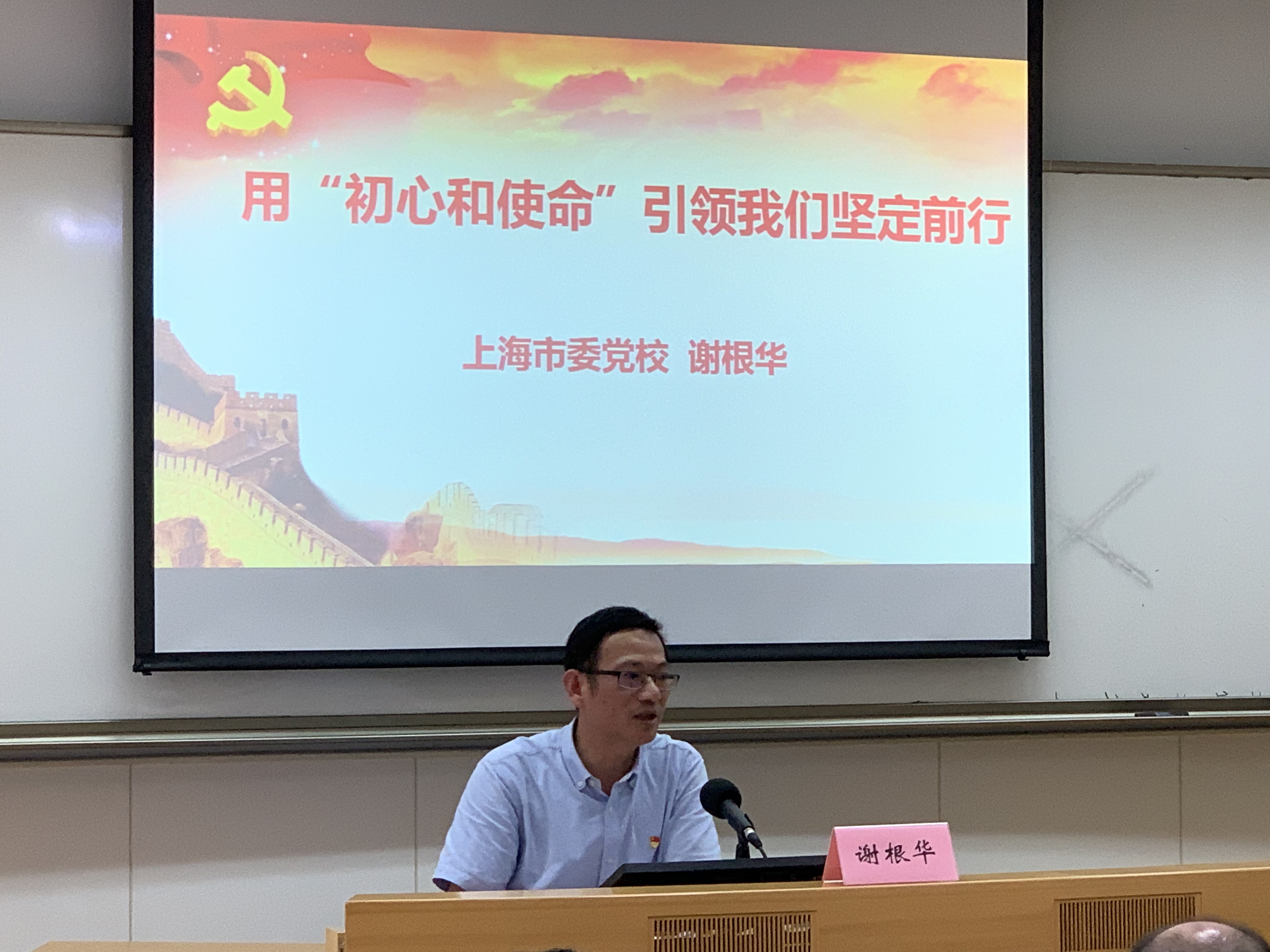 本网讯 按照校院“不忘初心、牢记使命”主题教育统一部署安排, 7月19日下午,副校院长谢根华为分管部门同志讲授专题党课——《用“初心和使命”引领我们坚定前行》。市委“不忘初心、牢记使命”主题教育第五巡回指导组副组长刘道平及相关领导到会指导。校院工作处、淀山湖校区管理办公室、梅陇校区管理办公室、经济管理干部学院、教师进修学院等部门全体党员参加学习。