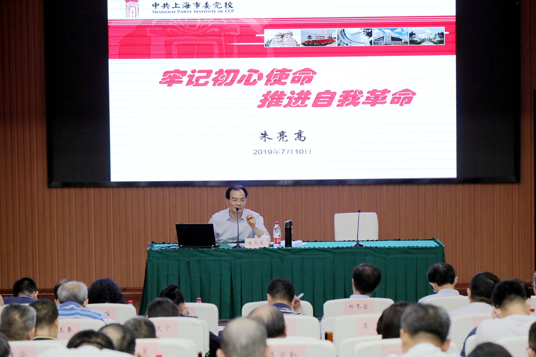 本网讯 7月10日下午,副校院长朱亮高为分管部门和后勤改革专题研讨班学员上主题教育党课。市委“不忘初心、牢记使命”主题教育第五巡回指导组有关领导同志到会指导。