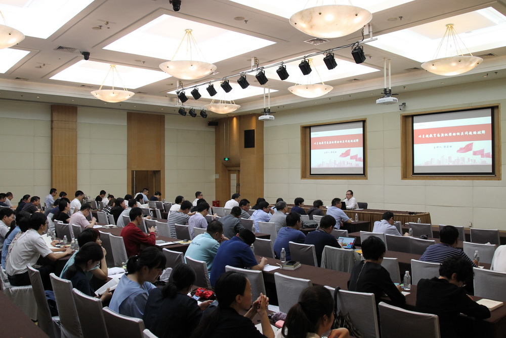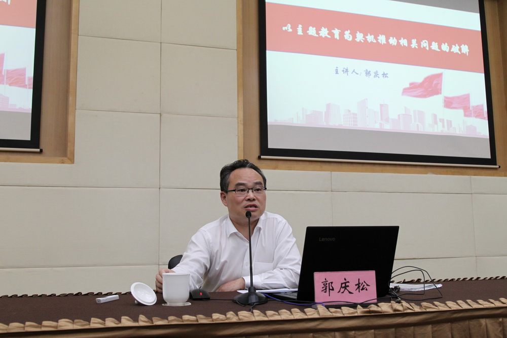本网讯 7月12日下午,副校院长郭庆松为分管、协管及联系部门同志讲授“不忘初心、牢记使命”专题党课——以主题教育为契机推动相关问题的破解。办公室、组织人事处、科研处、外事处、决策咨询部、经济学教研部、领导科学教研部、经济管理教研部、上海发展研究院等部门全体党员参加学习。