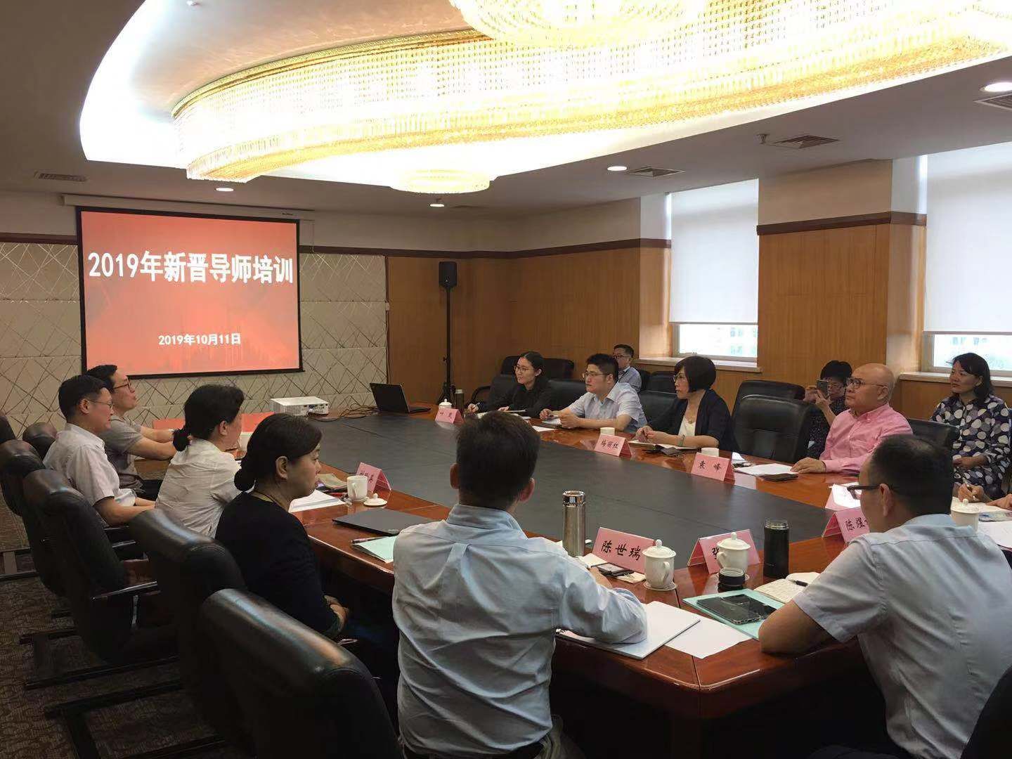 本网讯 10月11日,我校在海兴410教室举行2019年新晋研究生导师培训。教育长梅丽红参会,同与会导师亲切座谈。