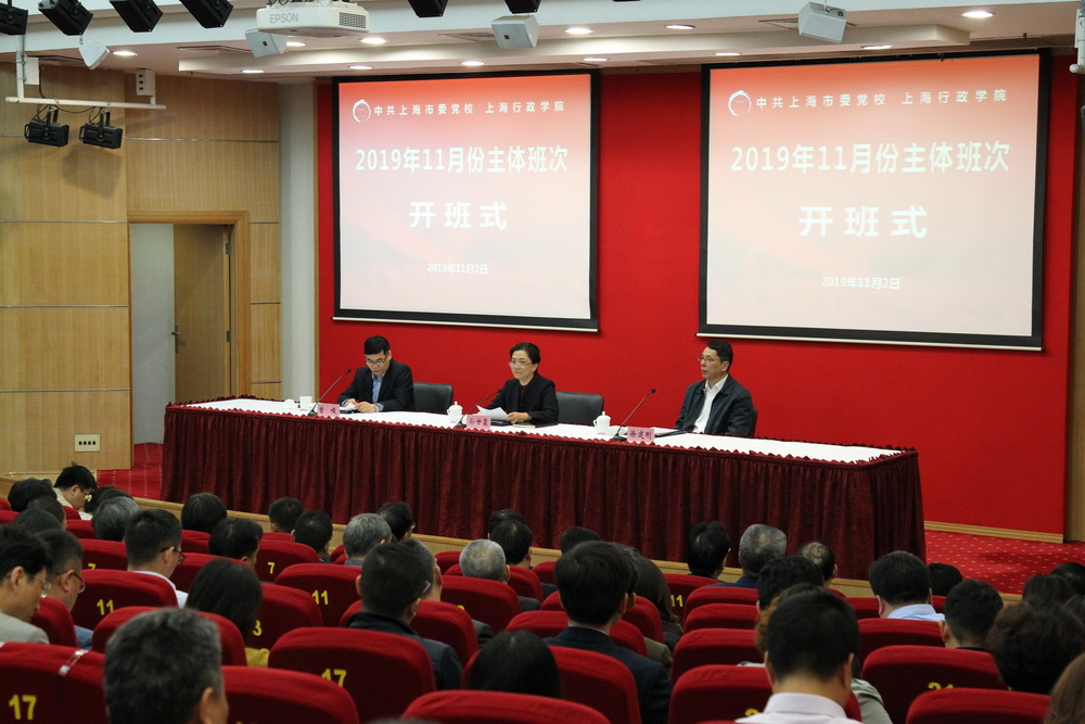 校院第119期领导干部进修班、第73期党政机关正处级干部轮训班、第98期上海市机关处级领导职务公务员任职培训班和第10期处级干部进修班等四个班次的全体学员参加开班式。校院有关部门人员列席开班式。