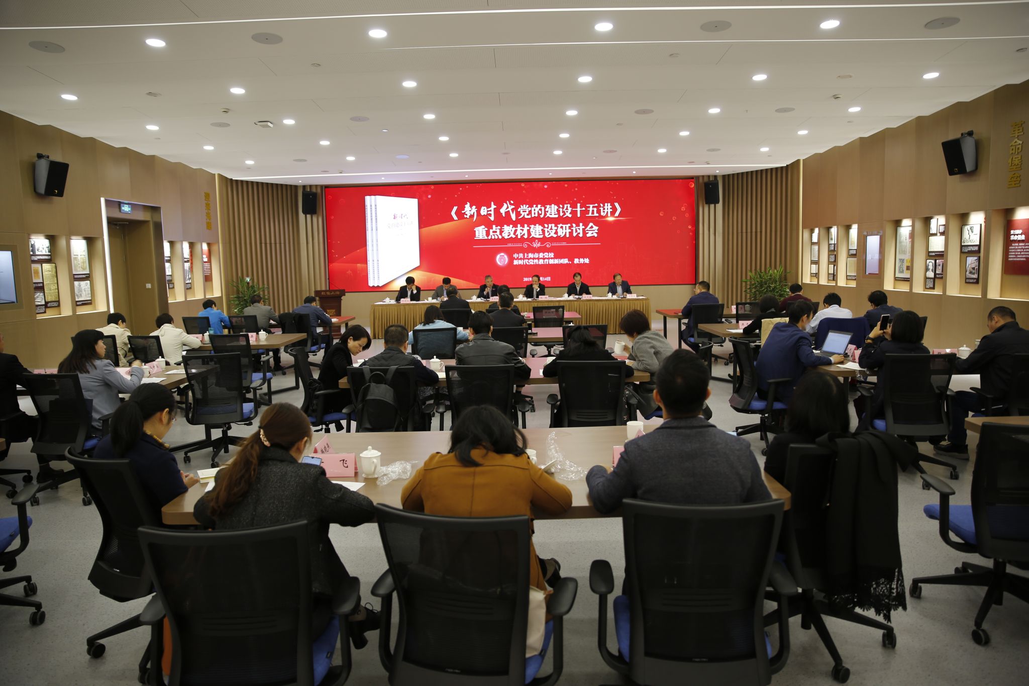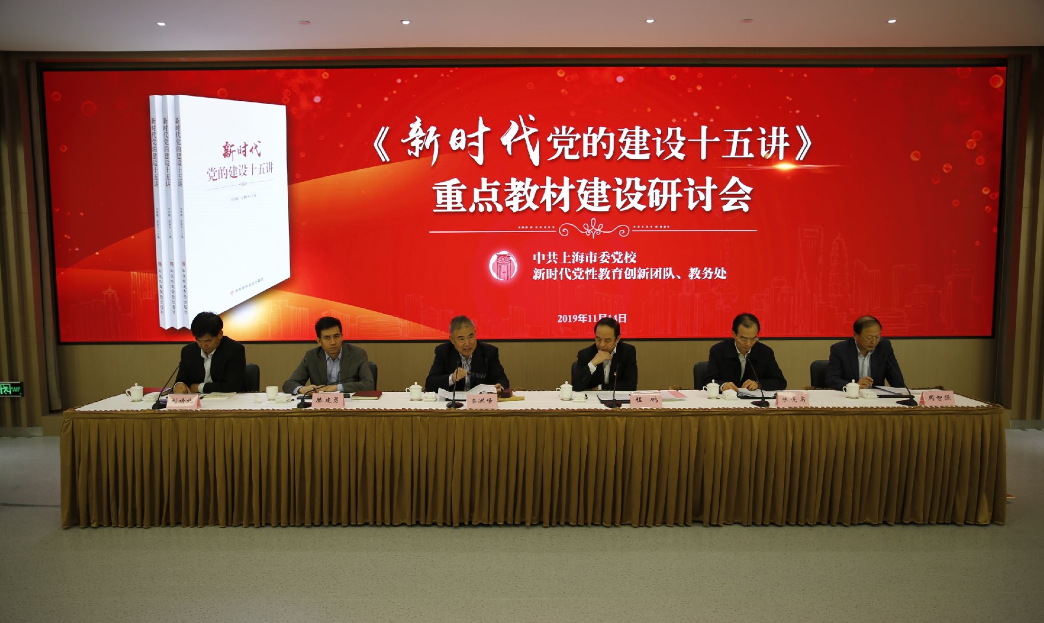 本网讯 11月14日上午,我校召开《新时代党的建设十五讲》(以下简称《十五讲》)重点教材建设研讨会。会议邀请校党的建设研究院院长李洪峰、市生态环境局党组书记程鹏、市教卫党委副书记滕建勇、中国浦东干部学院副院长刘靖北、解放日报社党委副书记周智强等专家领导出席。副校长朱亮高主持会议。