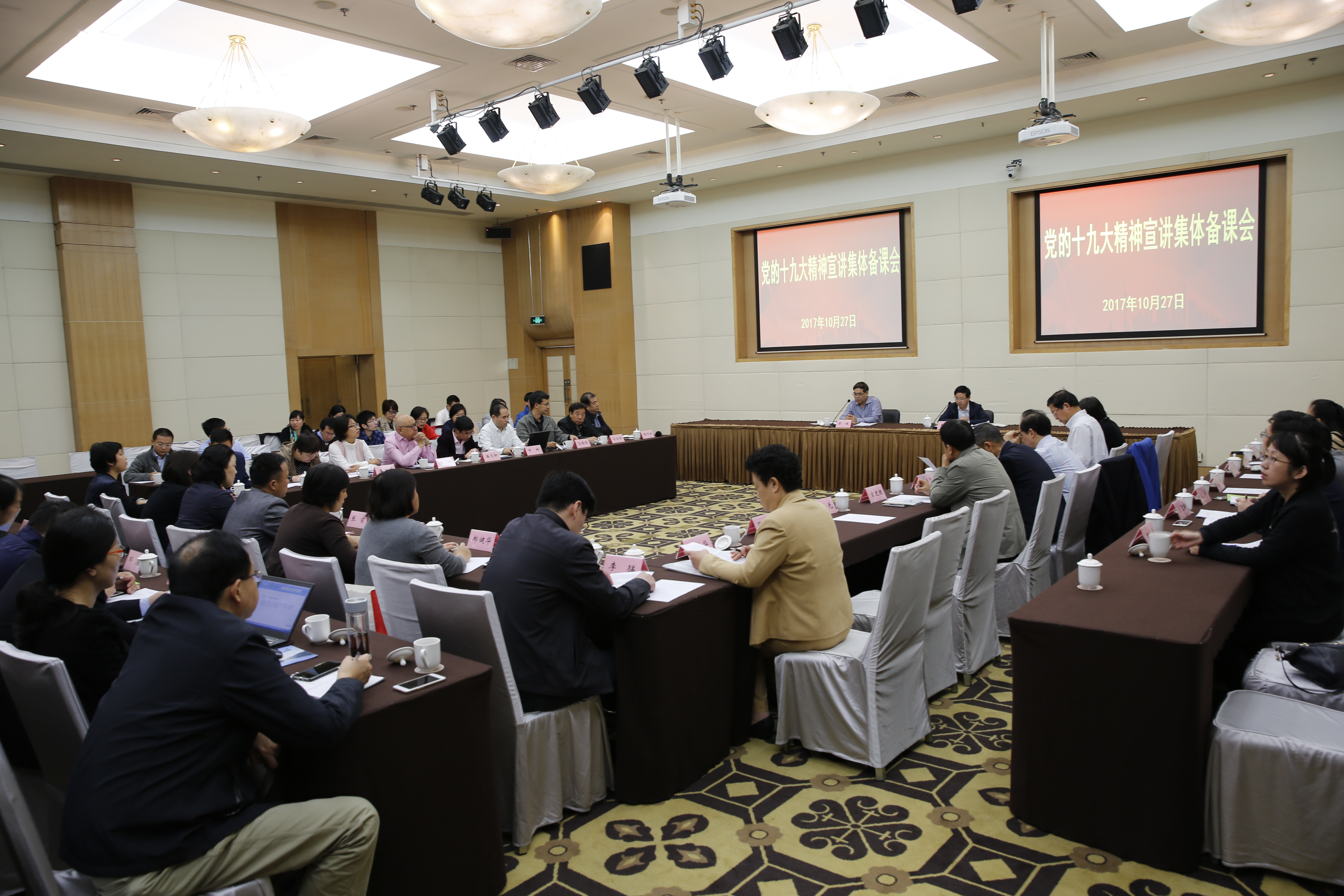 教务处负责人在会上布置学习党的十九大精神备课任务,强调集体攻关、集体备课,并在宣讲讲题上、文本研读上、课程框架上提出要求和思路。在座的教研部负责人与教师代表也围绕如何备好课进行了讨论交流。