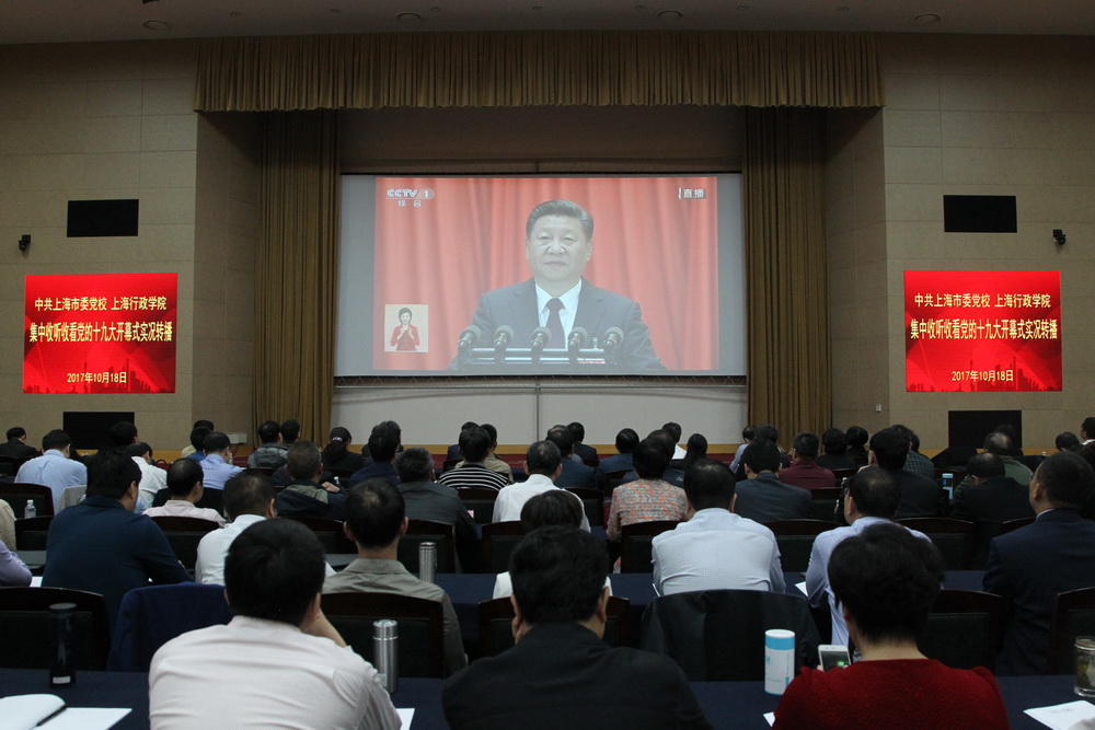佩戴着党徽的教职工和学员早早来到会场,等待收看十九大开幕会。大会开始之后,教职工和学员跟随会议进程进行了唱国歌和为革命先辈默哀活动。当习近平总书记作报告时,教职工与学员屏息静气,认真聆听,不时在笔记本上迅速记录,为报告内容击掌赞叹,自豪与振奋之情溢于言表。收看结束后,大家表示,“报告总结了过去5年的成就,更指明了未来一段时间中国的发展方向,催人奋进”“报告内容丰富、信息量大,要深入学习”。大家还在微信群中及时转发主流媒体对大会的一线报道和现场报道,交流观看心得。