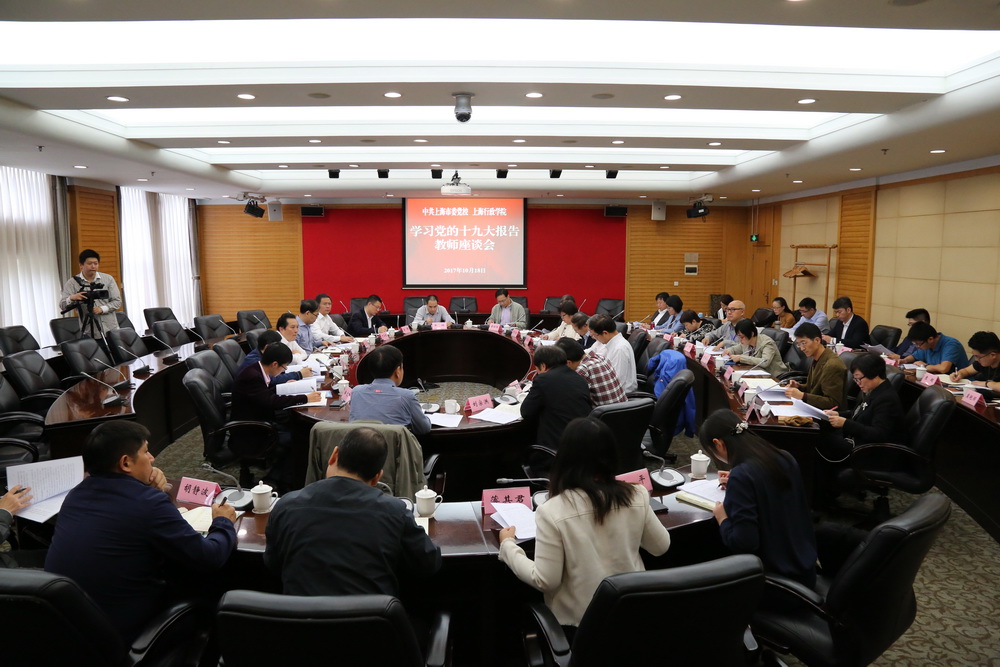 本网讯 在上午认真收看了党的十九大开幕会现场直播后不久,10月18日下午,我校即组织召开学习十九大报告教师座谈会,为正式启动党的十九大精神学习宣讲进行准备预热。常务副校长沈炜出席座谈会并提出明确要求。副校长曾峻主持会议。