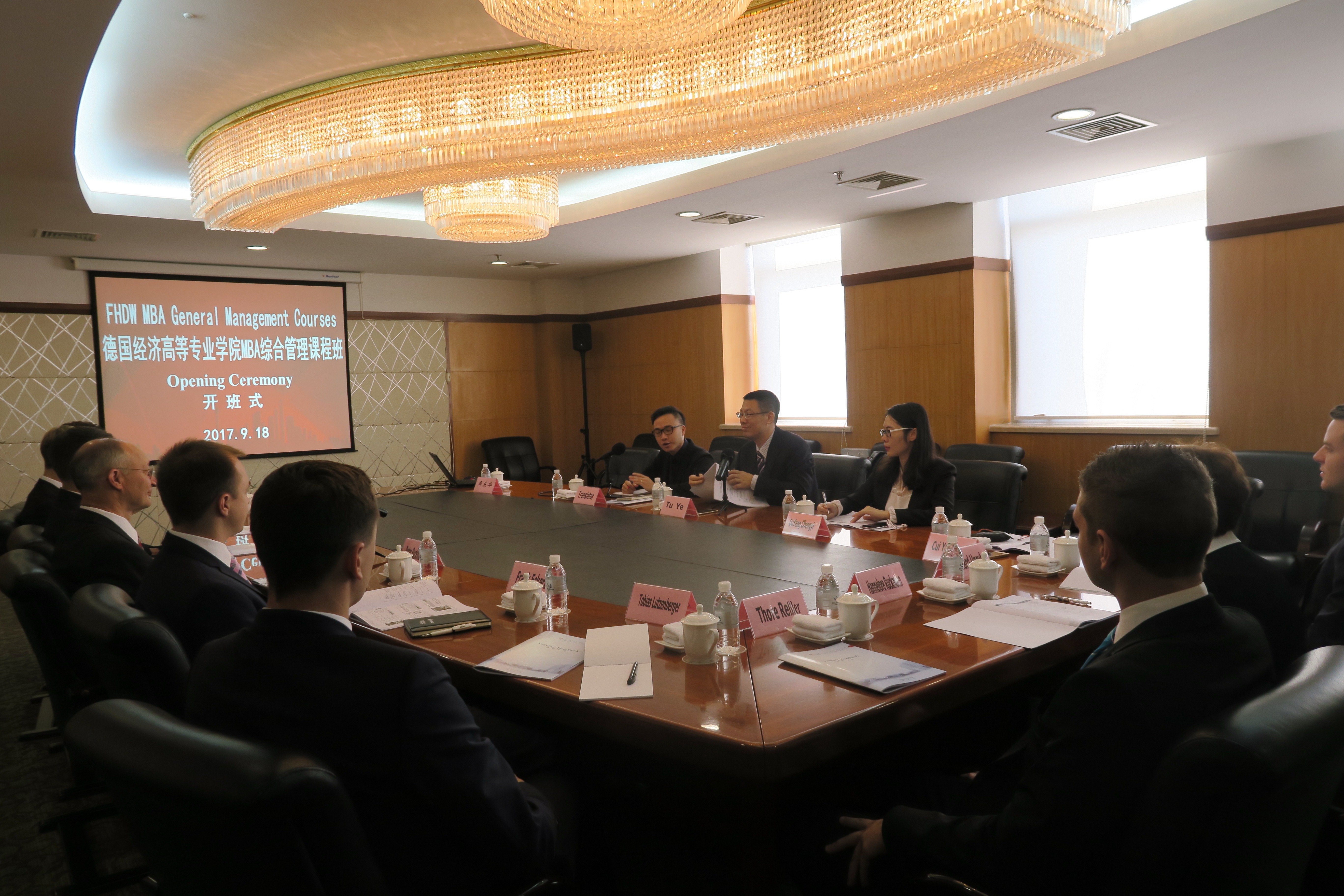 本网讯 9月16日至9月24日,2017年德国经济高等专业学院MBA综合管理课程班在我院举办,该项目是德国经济高等专业学院第十一年率团来我院培训。副院长曾峻热情会见研修班成员,并出席结业式,与学员交流培训感受并为学员颁发结业证书。外事处、培训处负责人陪同会见。