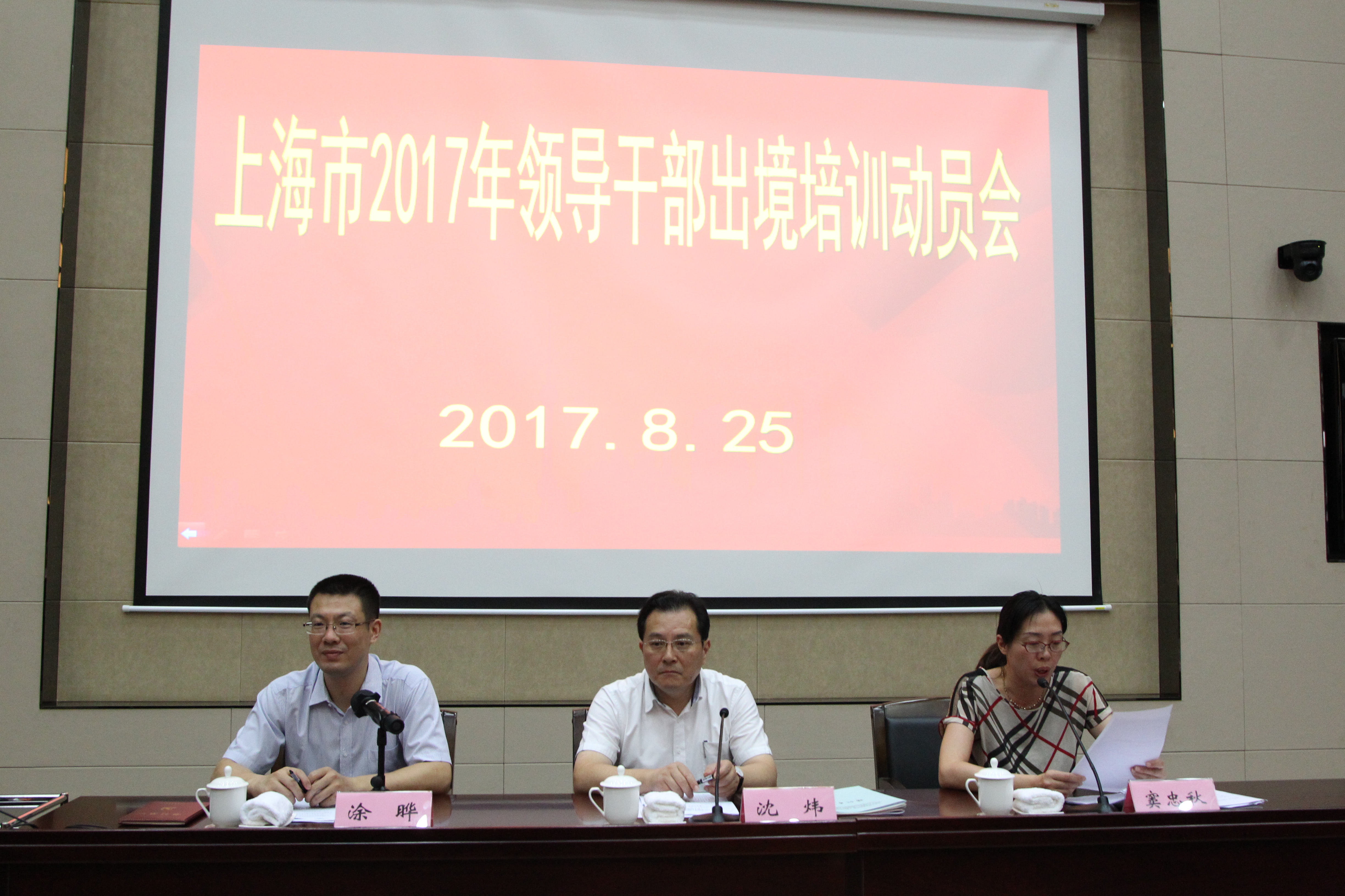 本网讯 8月25日上午,由市委组织部、上海行政学院联合举办的2017年上海市领导干部短期出境培训动员会在我院召开。常务副院长沈炜作动员讲话。市委组织部干部教育处处长窦忠秋宣布各短期出境培训团组骨干名单并致辞。