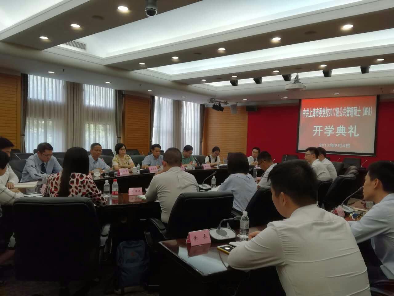 本网讯 9月4日下午,上海市委党校2017级公共管理硕士(MPA)开学典礼在海兴教学楼202教室举行。上海市委党校教育长梅丽红,研究生部主任罗峰,公共管理教研部副主任陈保中、董幼鸿出席开学典礼。