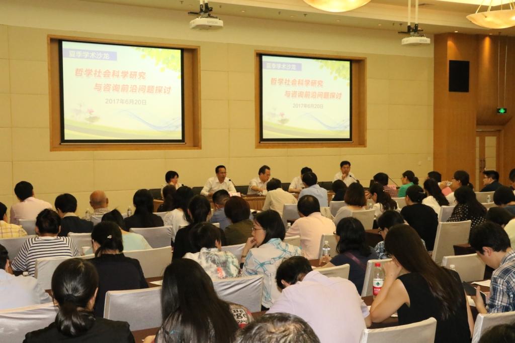 本网讯 6月20日上午,校院举办2017年夏季学术沙龙,主题为“哲学社会科学研究与咨询前沿问题探讨”,副校院长郭庆松出席并作总结。总校、分校、区党校教研人员等180余人参加。