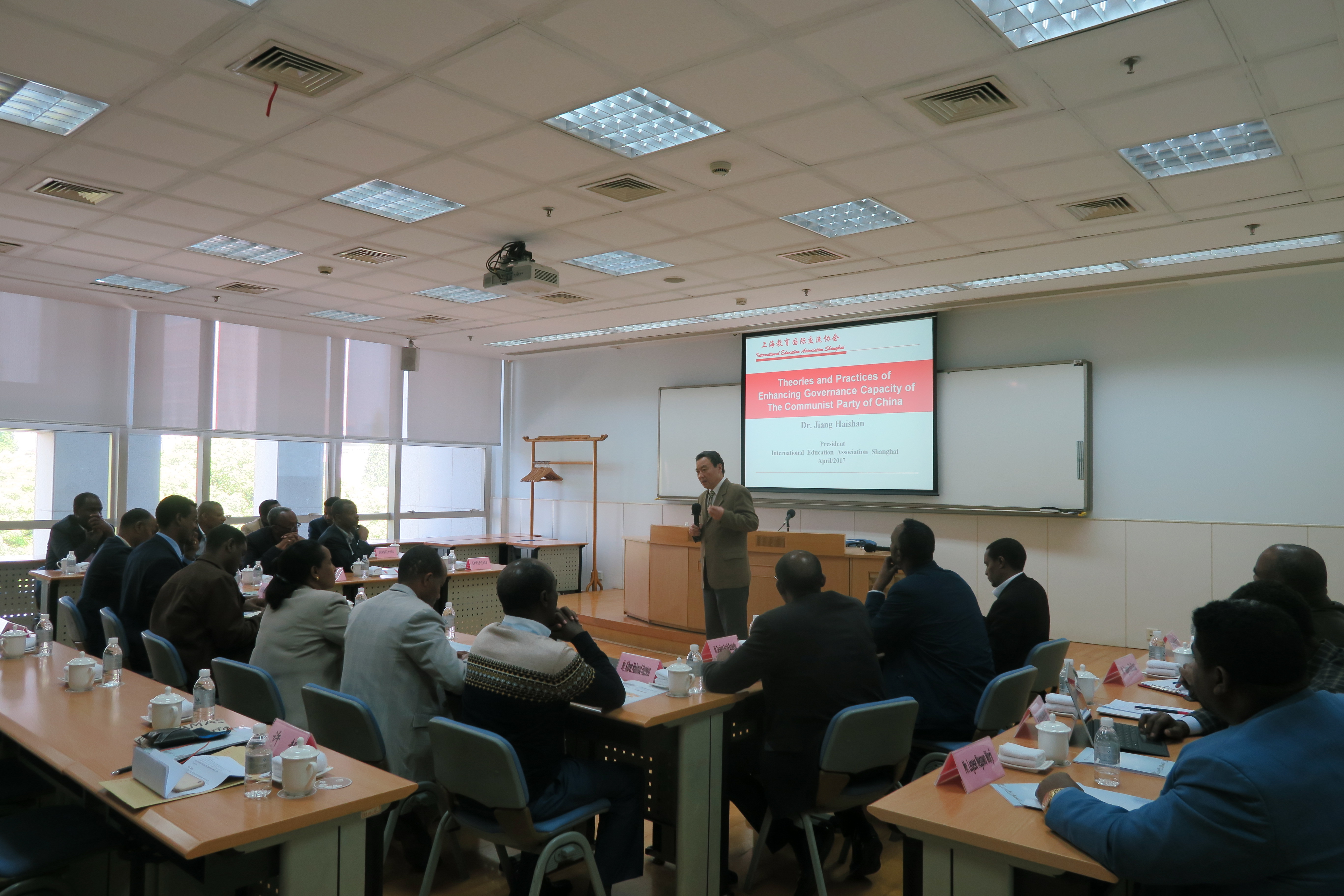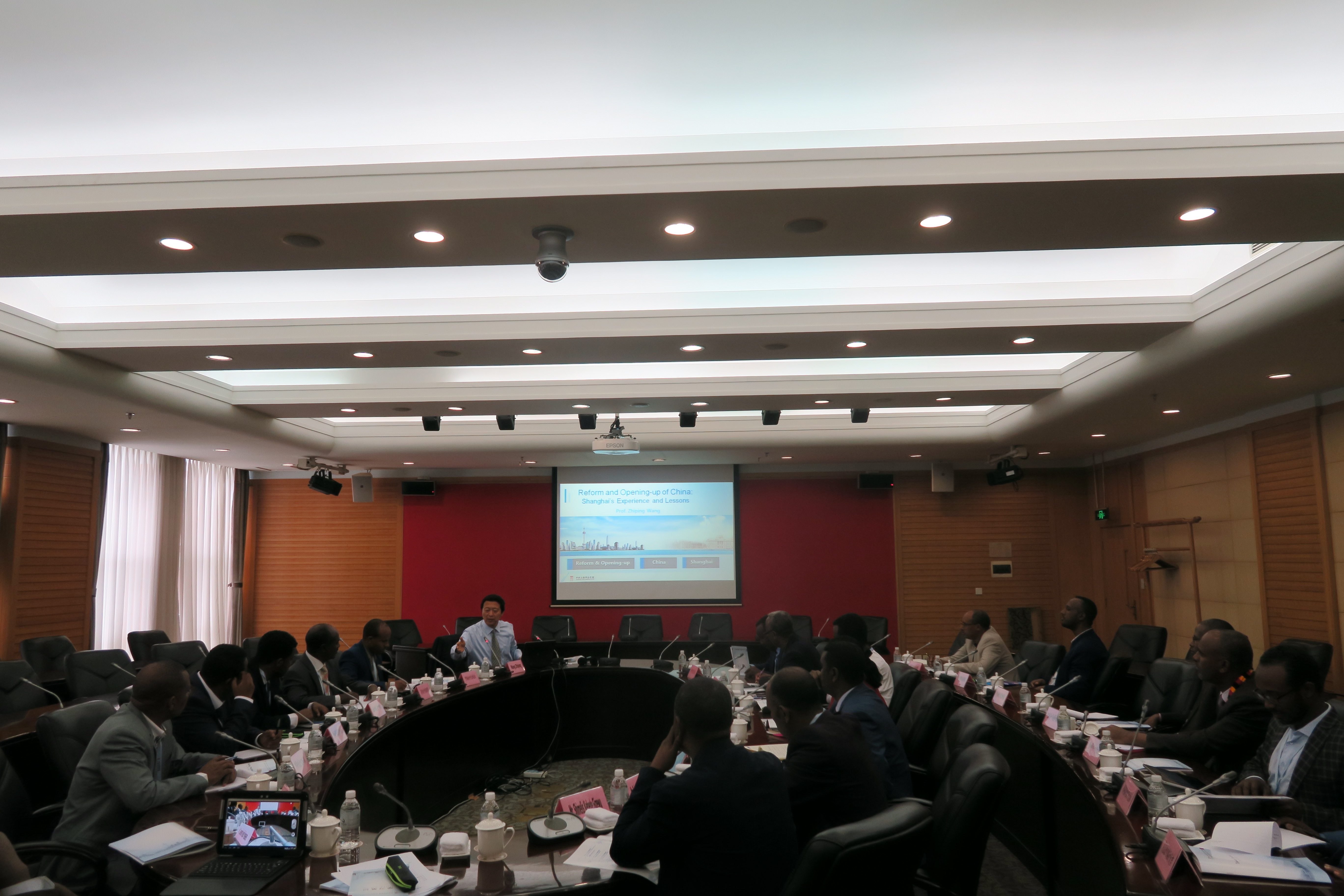中共上海市委党校副校长曾峻热情会见研修班成员,并详细介绍我校基本概况。研修班团长、埃革阵执委、中央书记处城市政治与组织部部长菲特莱沃克·格布里西亚波·阿布拉哈女士在开班致辞中表示:“感谢中国政府和人民为埃塞俄比亚的发展提供全面的合作和帮助,目前,在埃革阵党领导下,埃塞俄比亚的经济实现了快速增长,但我们也认识到,要进行结构性的发展和转型,才能实现可持续地增长;为此,我和同事来到中国、来到上海,了解并学习中国共产党领导城镇化发展方面的经验,相信在上海的讨论和交流一定十分精彩!”上海市人民政府外事办公室副主任傅继红、党宾处处长马俊伟,上海市委党校外事处处长刘登晓、培训处处长涂晔等参与会见。