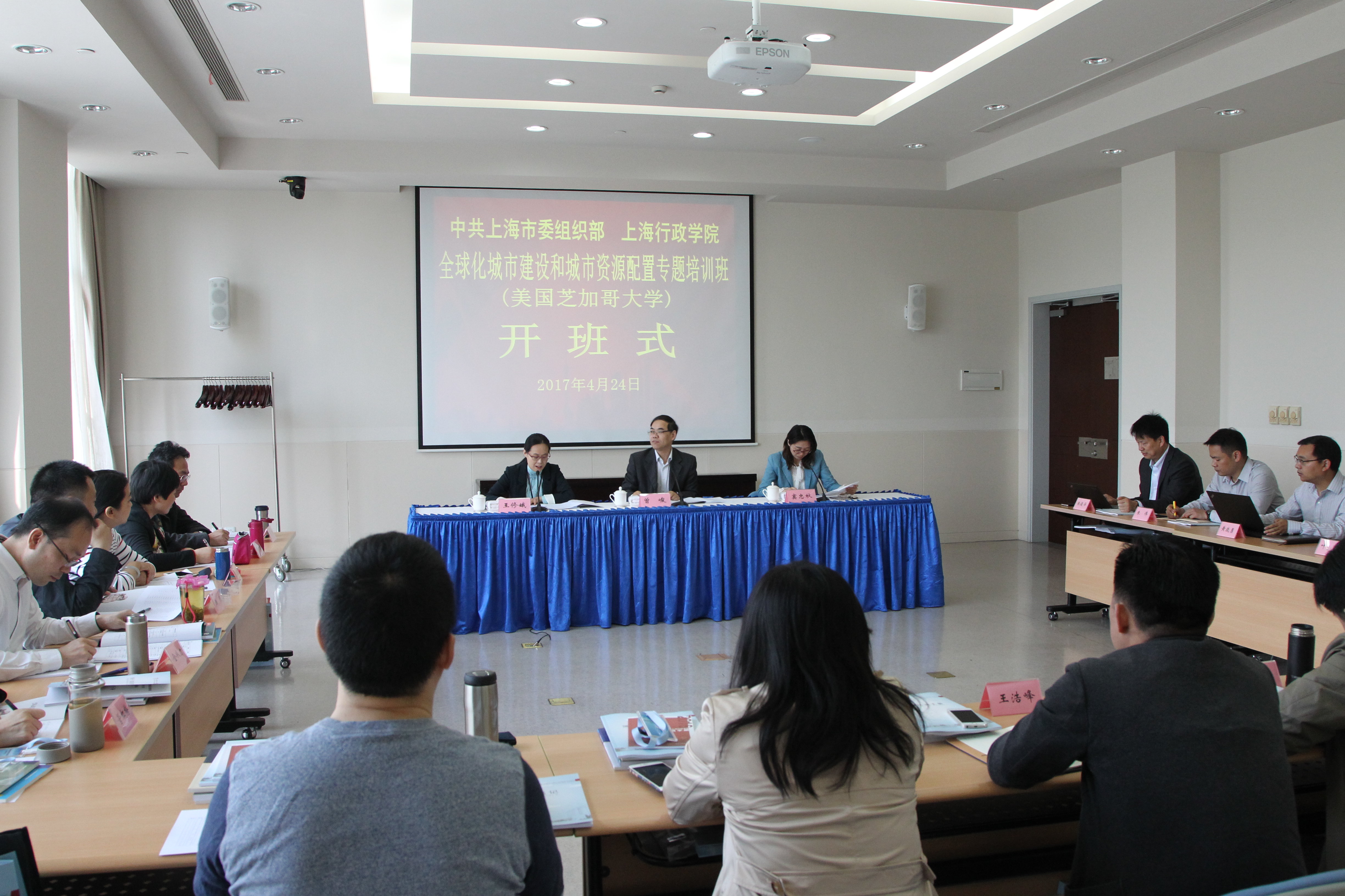 本网讯 4月24日上午,由市委组织部、上海行政学院联合举办的全球化城市建设和城市资源配置专题培训班暨上海市第26期中青年领导干部中长期境外培训班开班。上海行政学院副院长曾峻、市委组织部干部教育处处长窦忠秋出席开班式并讲话。培训处负责人主持开班式。