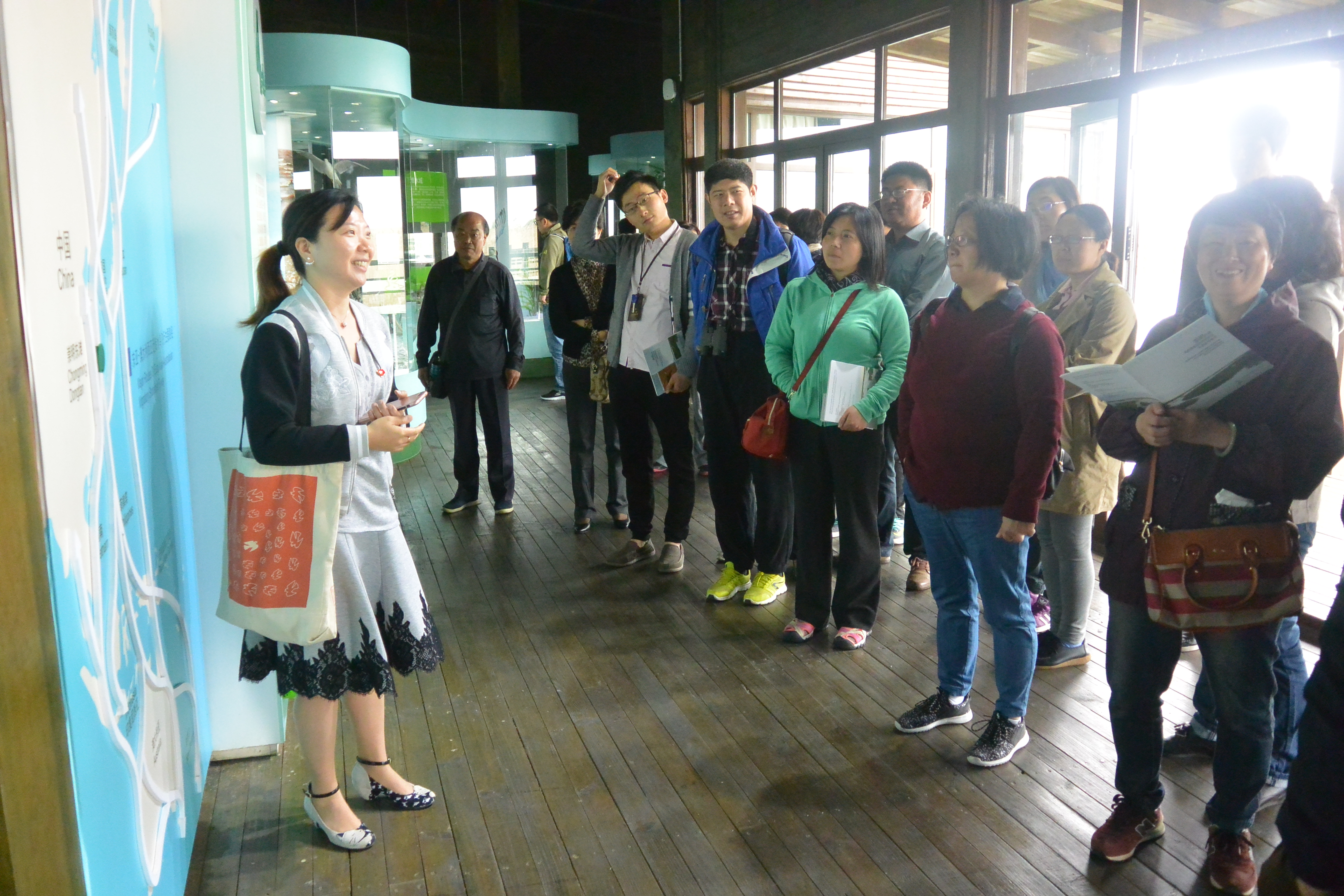 随后,大家分别参观了保护区科普教育基地的观鸟栈道、生命映像展馆以及防护大堤,通过专业的讲解,大家进一步了解了湿地的概念与主要类型,东滩的地理位置与地貌特征、鸟类迁徙等知识,切身感受到东滩湿地在鸟类保护方面的重要意义和“世界级生态岛”的绿色发展定力。