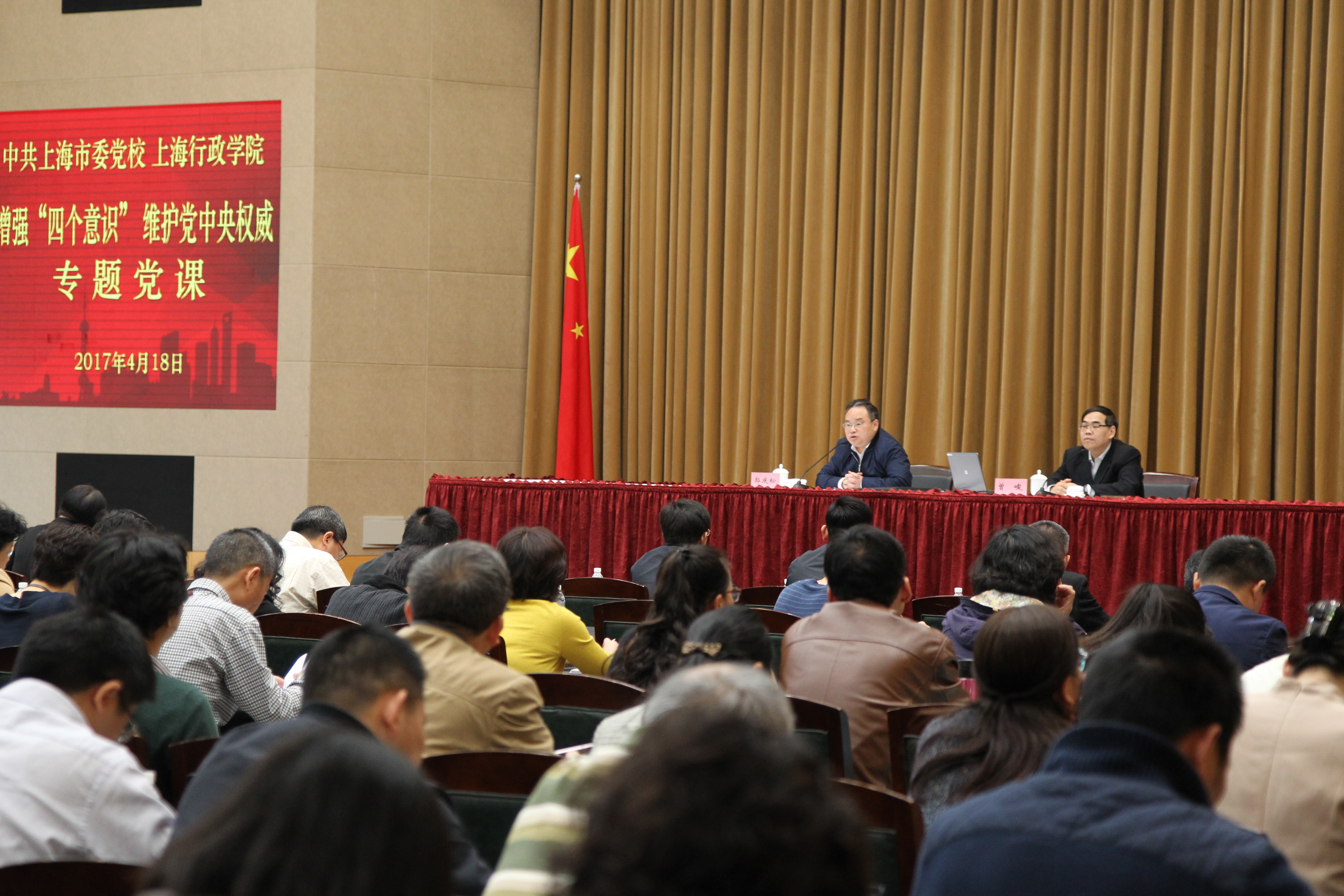 本网讯 4月18日上午,校院在海华101报告厅举行了一次中心组成员扩大到全体党员的学习会,全体在校的校委委员、总校全体党员共280余人参加会议,一起听了副校院长曾峻主讲的“增强‘四个意识’,维护党中央权威”专题党课。学习会由副校院长郭庆松主持。
