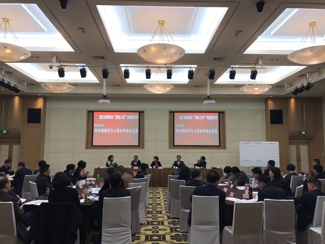 本网讯 3月22日晚上,浙江省湖州市“接轨上海”专题研讨班46名学员在海兴教学楼201教室举行了一场以“新时期湖州与上海如何融合发展”为主题的研讨式教学。