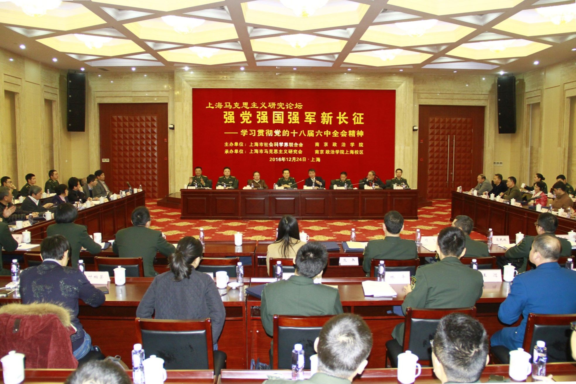 本网讯 为认真学习贯彻党的十八届六中全会精神,12月24日上午,由上海市社会科学界联合会、南京政治学院共同主办,上海市马克思主义研究会、南京政治学院上海校区承办的“贯彻党的十八届六中全会精神:强党强国强军新长征——上海马克思主义研究论坛”在南京政治学院上海分校举行。中共上海市委宣传部副部长、上海市社会科学界联合会党组书记燕爽出席会议并讲话。南京政治学院副院长崔连杰,中共上海市委党校副校长郭庆松分别致辞。来自有关高校、市委党校的专家学者60余人与会。