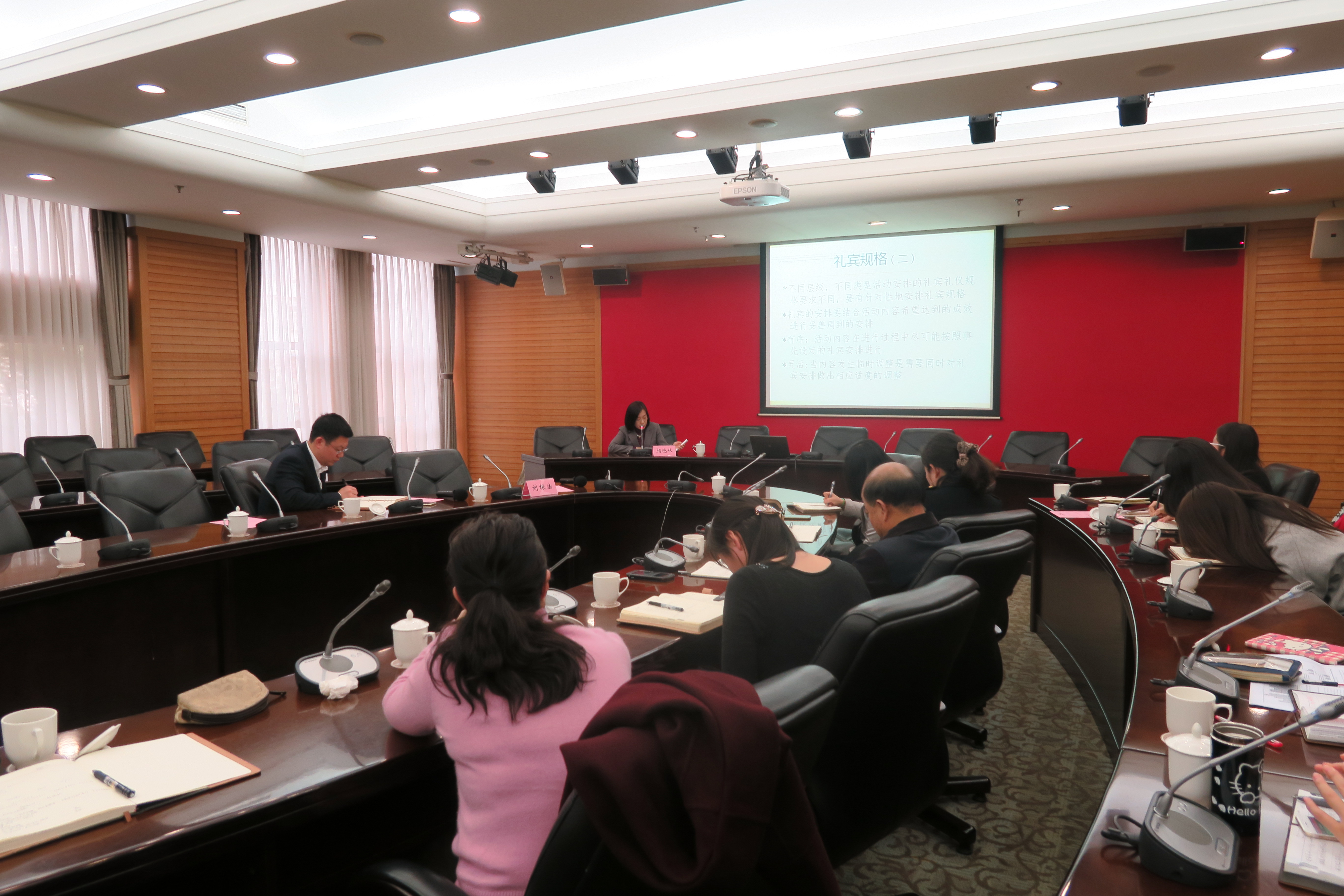 本网讯 为进一步提升校院国际培训工作水平,12月12日下午,来自培训处、外事处、教务处、学员工作处、安全保卫处、海兴大厦的党员济济一堂,开展“国际培训风险防控与外宾接待礼仪”联合支部学习。