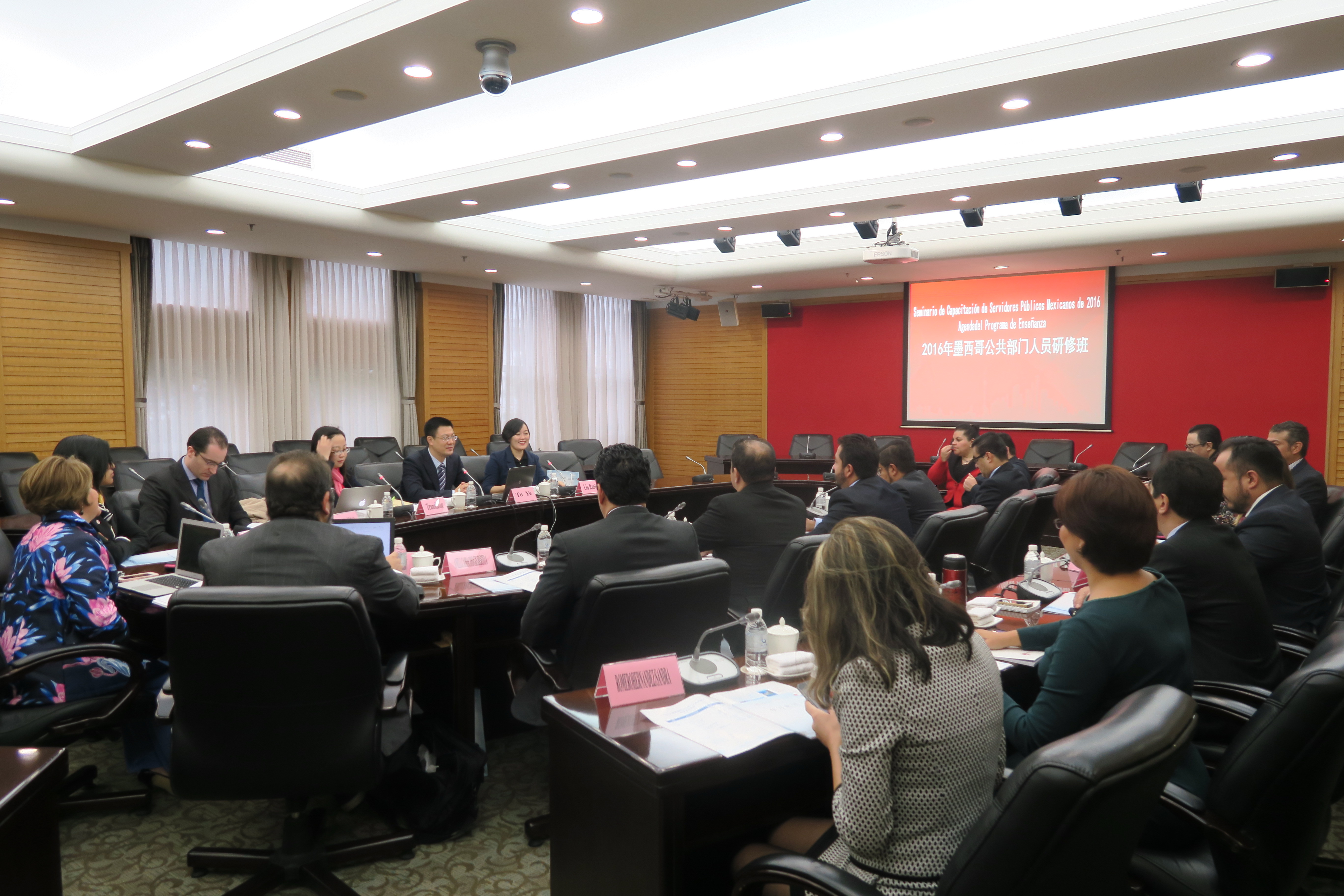 本网讯 11月21-24日,受国家行政学院培训中心委托,2016年墨西哥公共部门人员研修班来我院研修。该班学员由来自墨西哥移民局、环境与自然资源部、旅游部、内政部、银行与证券委员会等各部门以及墨西哥公共管理学院的19名中高级官员组成。