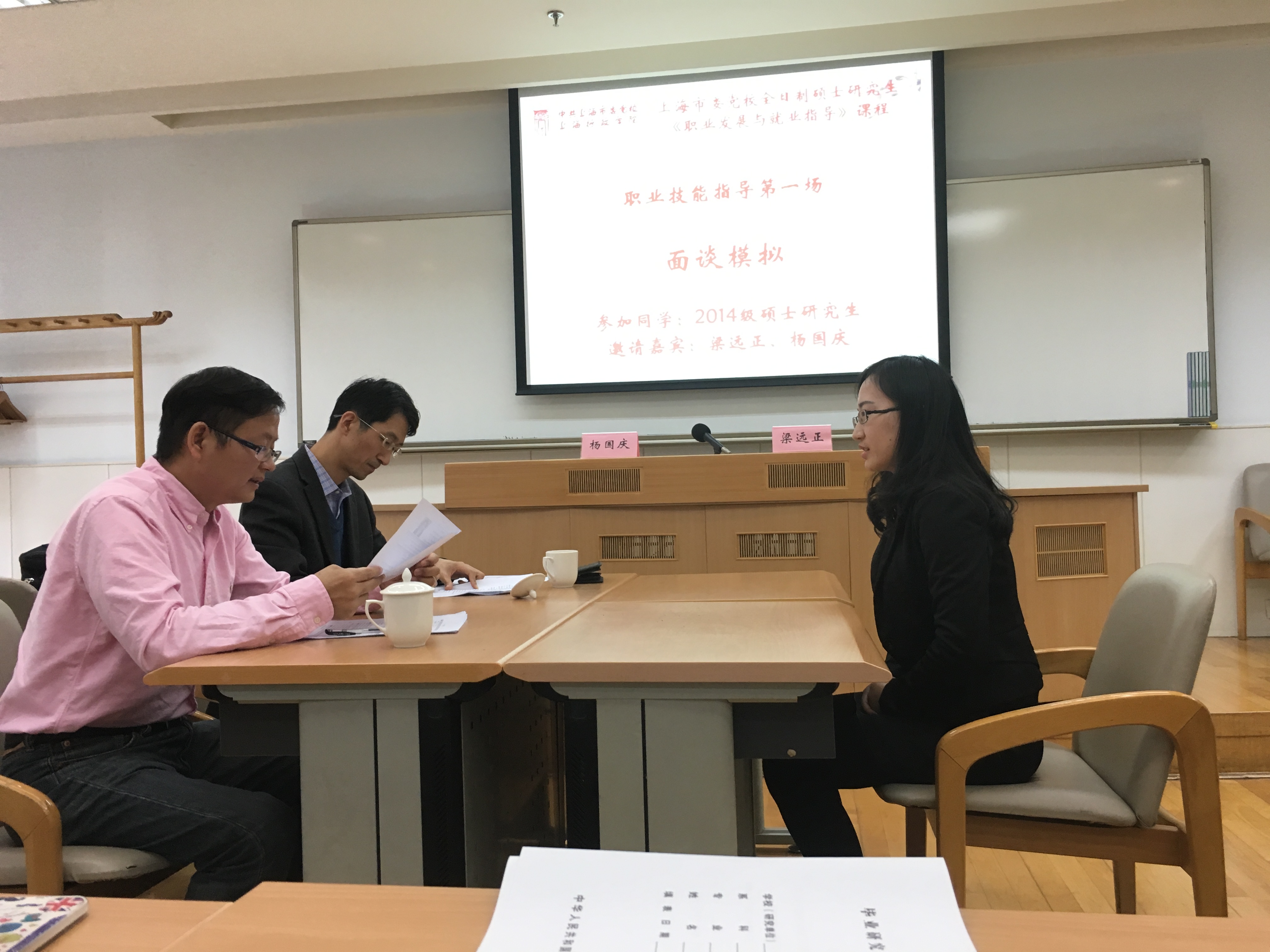 本网讯 为增进同学们对求职面试的全面了解,培养研三毕业生在面试中的应试能力,提高面试时的心理素质,掌握面试技巧、礼仪、程序,帮助同学们在面试中脱颖而出,11月3日上午,校研究生部面向2014级研究生进行了一堂企业模拟面试指导课。课程邀请齐家网招聘总监梁远正老师和市委党校杨国庆老师指导。