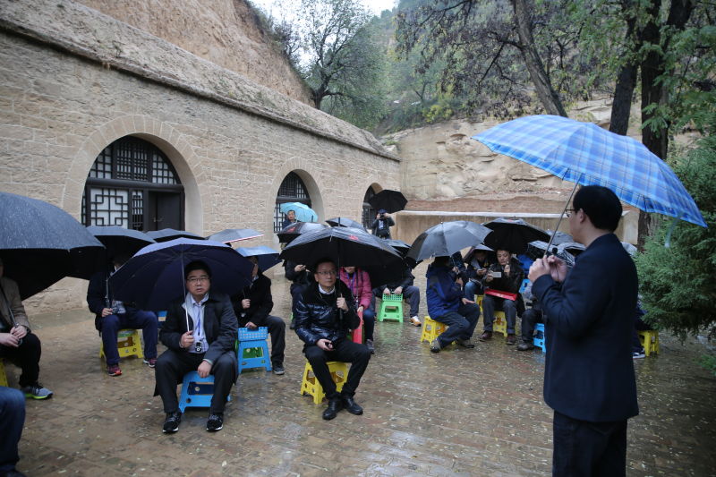 十月的延安已是深秋初冬我国北方的典型天气,凉而多雨。在杨家岭旧居门口的空地上,学员们冒着滂沱大雨聆听现场教学,雨水打湿了大家的后背,但大家听得聚精会神。宝塔山上,学员们面对延安宝塔,重温了入党誓词。“四八”烈士陵园内,学员们向先烈们献花表达哀思。大家拿着小板凳,露天而坐,在历史发生的地方感受历史,让学员们感慨良多。