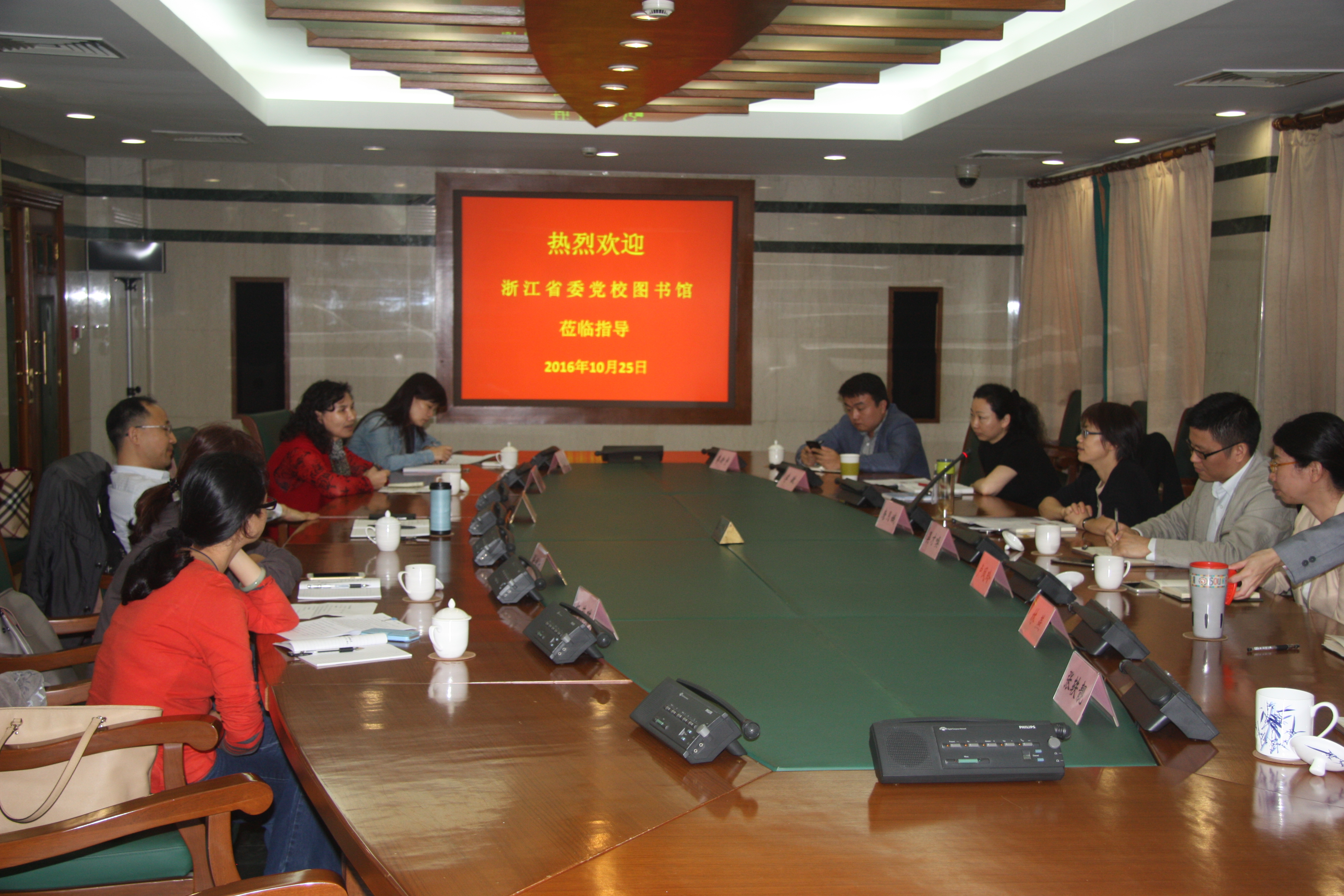 本网讯 10月26日上午,浙江省委党校图书馆馆长刘庆华等一行5人赴我校考察,校院图书馆馆领导和各业务部门主任参加了业务交流。