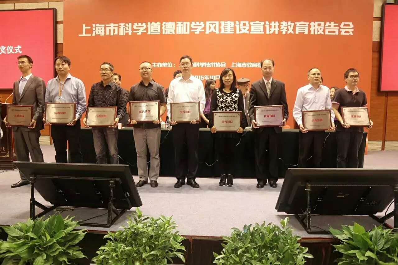 本网讯 10月25日,由市科协和市教委联合主办的“上海市科学道德与学风建设宣讲教育报告会”在科学会堂国际会议厅举行。会议对2015-2016年度上海市科学道德和学风建设宣讲教育“优秀组织单位”“优秀个人”“优秀活动项目”进行了表彰。其中,我校“社会研究方法论系列课程建设”项目由于特色鲜明、成果突出,在全市100多个项目中脱颖而出,荣膺“优秀活动项目”。