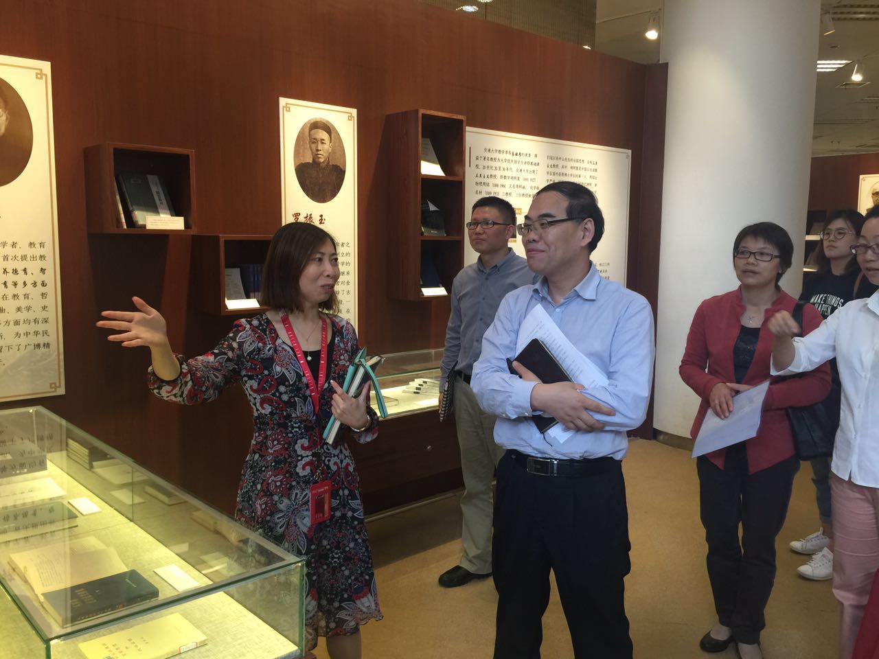 座谈会前,上海交大图书馆副馆长郭晶详细介绍参观了图书馆主馆,实地观摩了新图书馆的各阅览室、共享空间,以及交大120周年特色展厅等等,感受到了上海交大图书馆无处不在的创新设计理念。