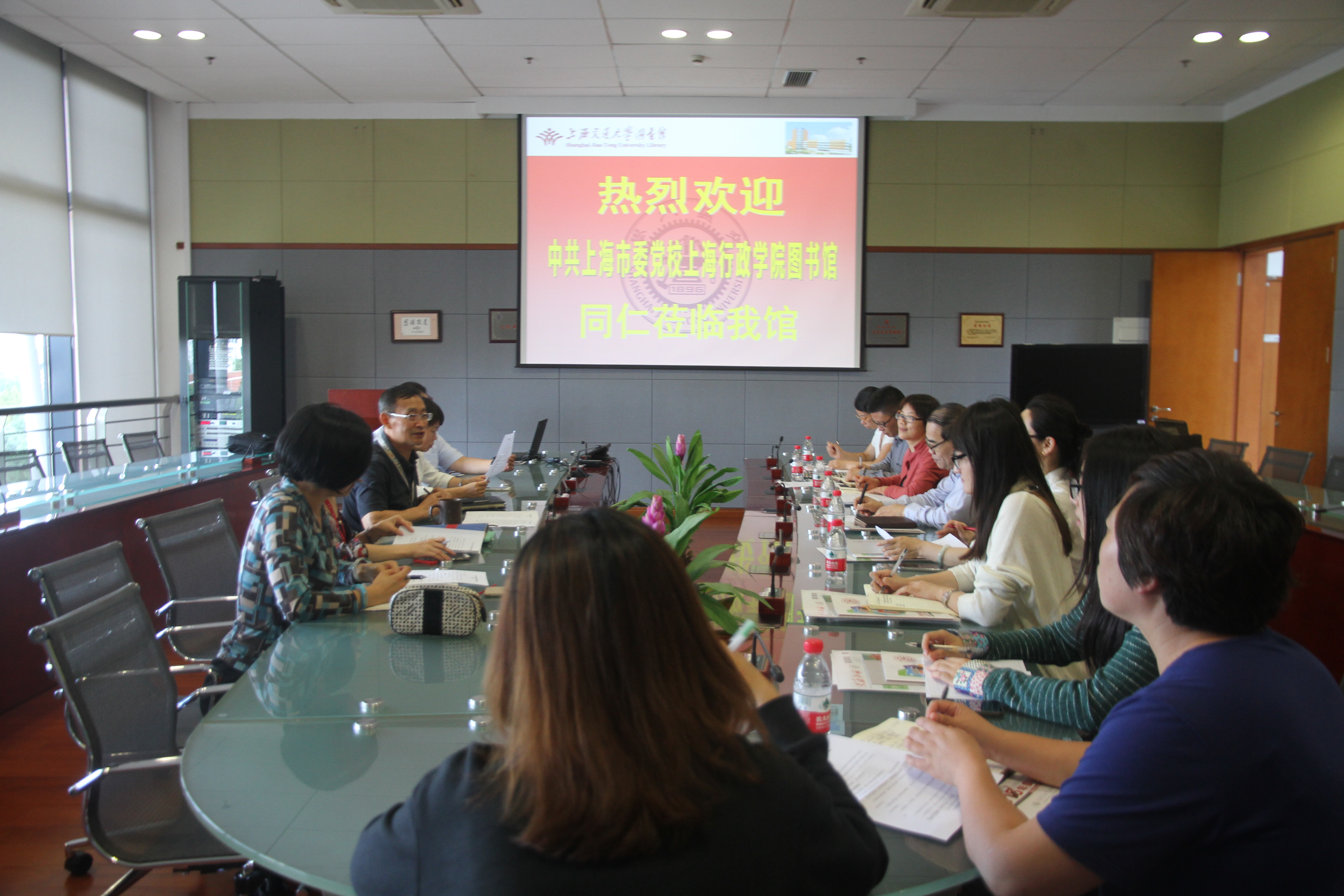 本网讯 10月10日下午,副校院长曾峻率领校院图书馆一行9人赴上海交通大学闵行校区图书馆调研,重点就服务创新、学科服务、资源共享和馆员培养等主题进行了深入的座谈交流。上海交通大学图书馆馆长陈进等全体馆领导参加了接待。