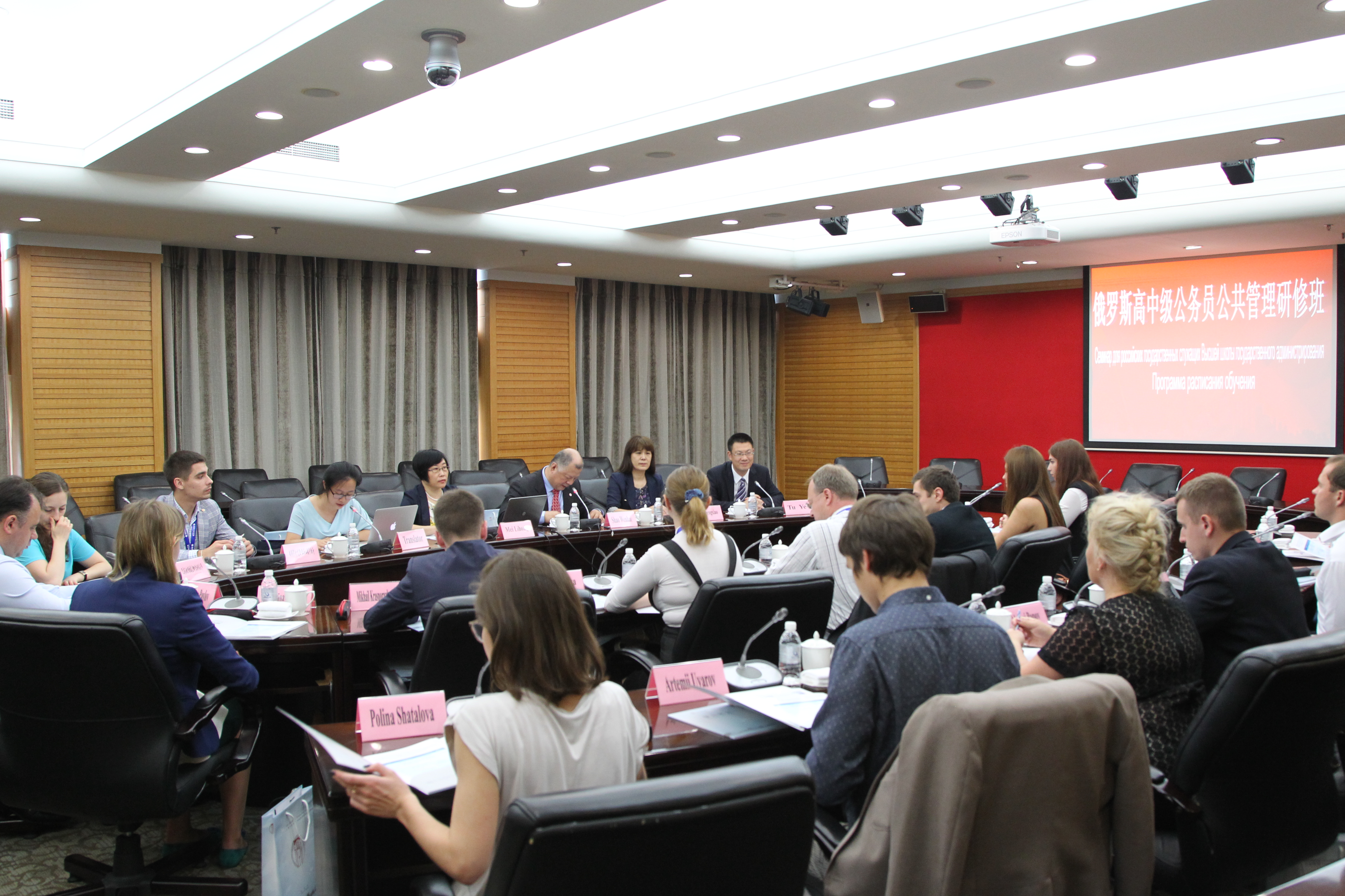 本网讯 9月22-23日,由国家行政学院和莫斯科国立大学公共行政学院共同举办的俄罗斯高中级公务员公共管理研修班来我院研修。该班学员由来自莫斯科国立大学、俄联邦能源部、财政部等部门的19名专家学者组成。原国家行政学院培训中心主任邵文海随班访问我院。