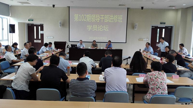 本网讯 第102期领导干部进修班在开学后两周的时间里,先后进行了“中国特色社会主义基本问题”和“深入学习贯彻习近平总书记系列重要讲话精神”两个单元的学习。为更好地转化学习成果,促进学学相长、教学相长,近日,由班级支部牵头策划论坛主题并成功举办第一次学员论坛活动。本次论坛共设两个主题,一是结合工作实际谈谈供给侧结构性改革;二是结合本人思想实际和学习认识,谈谈如何加强党性、坚定理想信念。