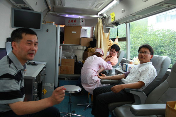 本网讯 6月27日上午,市委党校9号楼前人头攒动,参加无偿献血的志愿者们早早地就来到了这里等候。9点不到,献血车在众人的期盼中驶来,一年一度的献血工作立即井然有序地开展了起来。只见医务人员忙着为献血者测血压、体检、采血,志愿者们捋起袖子,伸出胳膊,充满爱心的热血缓缓地流进一个个储血袋,场面十分感人。副校院长李渤到献血车看望慰问了无偿献血人员。副巡视员、机关党委专职副书记、党群工作部主任董凌白,工会主席张国新,组织人事处靳慧等也一大早就来到现场开展服务保障工作。献血人员中,既有工作多年的职工,有刚参加工作的青年教师,还有即将毕业的研究生,当天,共有21人参与了无偿献血,献血量达到了4000余毫升,圆满完成了校院今年的献血任务。