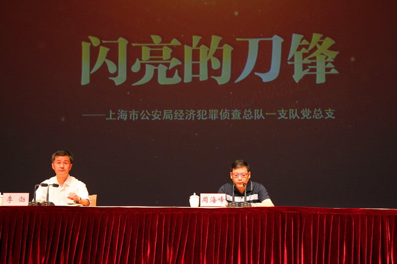 在王国平讲话后,全体与会人员听取了由全国先进基层党组织——上海市公安局经侦总队一支队党总支书记、支队长周海峰作的题为“用忠诚、专业、奉献,锻造守护上海金融安全的闪亮刀锋”的专题报告。在周书记冷静、严密的讲述中,大家认识了经侦一支队的光荣集体,体会到了经侦战线的惊心动魄,感受到了经侦一支队党总支在打击金融犯罪、经济犯罪的过程中所发挥的战斗堡垒作用。大家以热烈的掌声对周海峰的精彩报告表示感谢并表达对经侦一支队人民卫士的致敬。