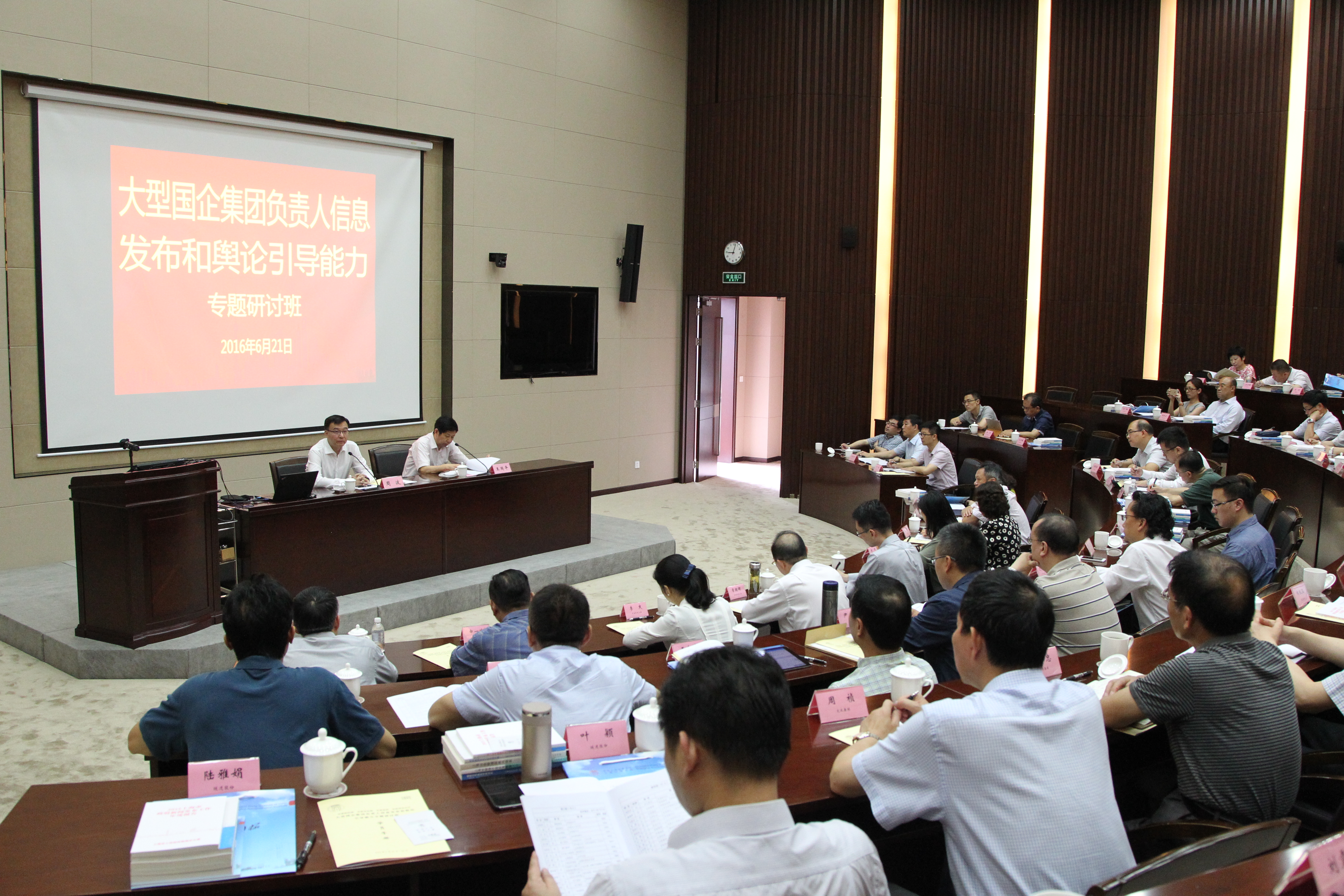 本网讯 6月21日至22日,市委组织部、市委宣传部、市委党校、市政府办公厅联合举办的大型国企集团负责人信息发布和舆论引导能力专题研讨班在我校举行。副市长周波出席开班式并作开班动员。常务副校长王国平主持。