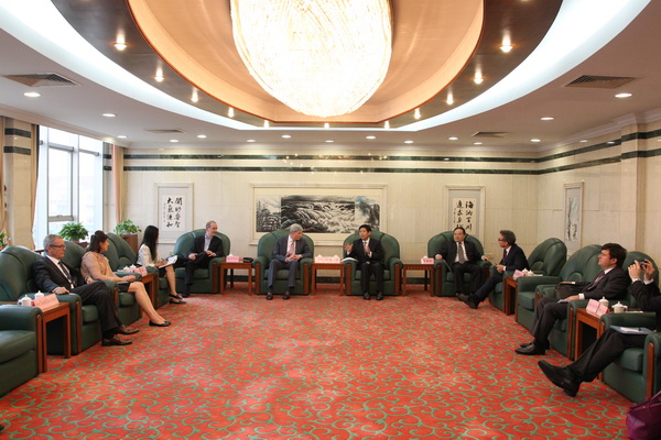 施瓦茨先生感谢上海行政学院的热情接待,他向王国平介绍了代表团的基本成员及来访中国的目的。他希望通过此次访问,更多了解处于经济转型发展中的上海。