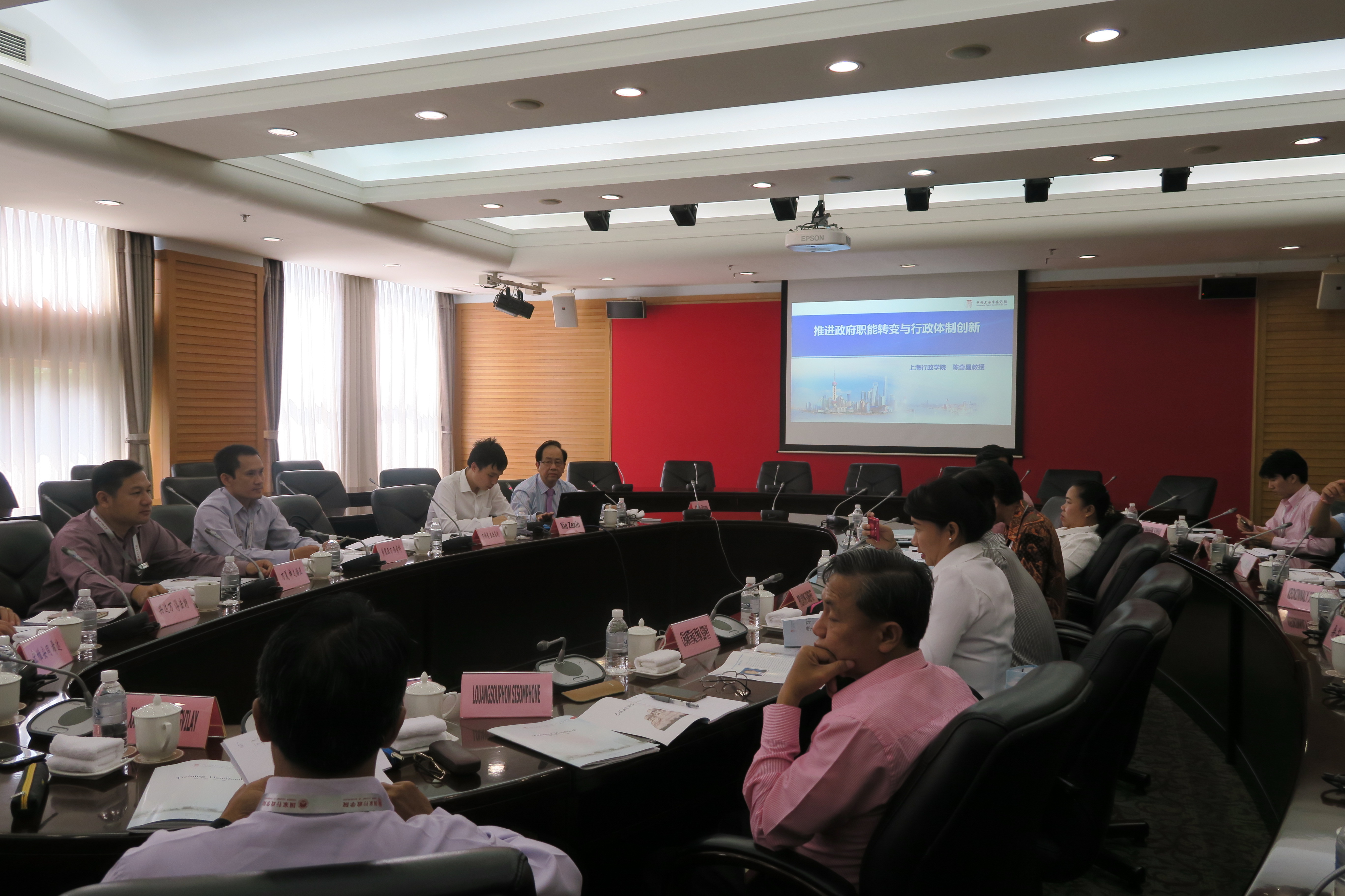 14日上午,教育长梅丽红热情会见研修班学员,外事处、培训处负责人陪同会见。公共管理教研部主任陈奇星教授为学员讲授“推进政府职能转变与行政体制创新”专题,介绍了我国行政体制改革的成效和当前存在的主要问题,以及按照中央关于行政体制改革的精神,上海推进政府职能转变与行政体制创新等内容。此外,学员还前往中国(上海)自由贸易试验区,听取自贸试验区改革试点情况,参观自贸区综合服务大厅和外高桥国际酒类展示交易中心;前往具有百年历史的上海浦东发展银行总部,听取经济学教研部副主任李敦瑞副教授介绍中国银行业发展基本情况,帮助学员更好地了解中国金融及财税政策经验。