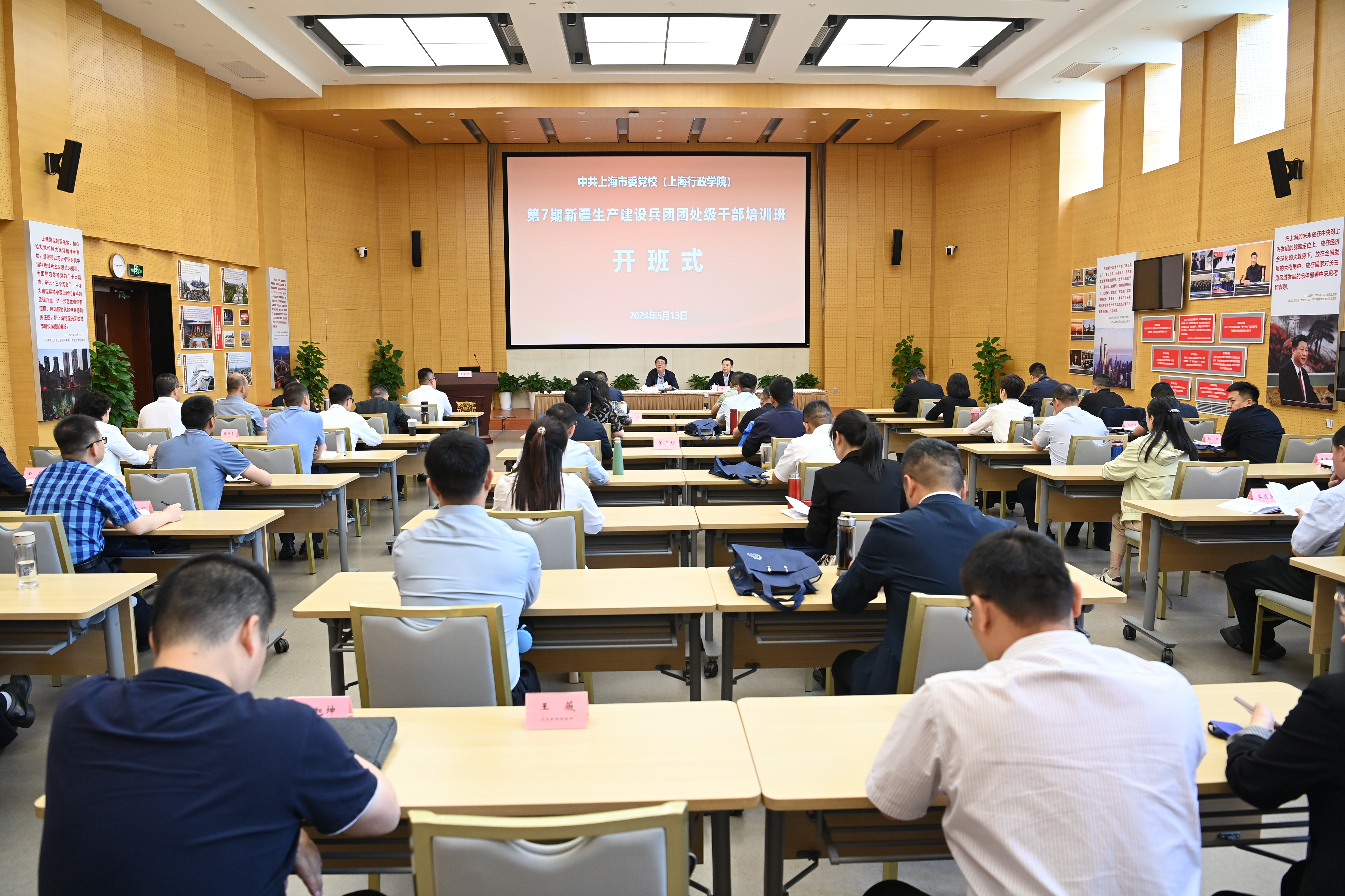 本网讯 5月13日上午,第7期新疆生产建设兵团团处级干部培训班在海中教学楼202教室举行开班式。新疆生产建设兵团党委党校副校长、一级巡视员强始学出席开班式并讲话,上海市委党校副校长罗峰主持开班式。