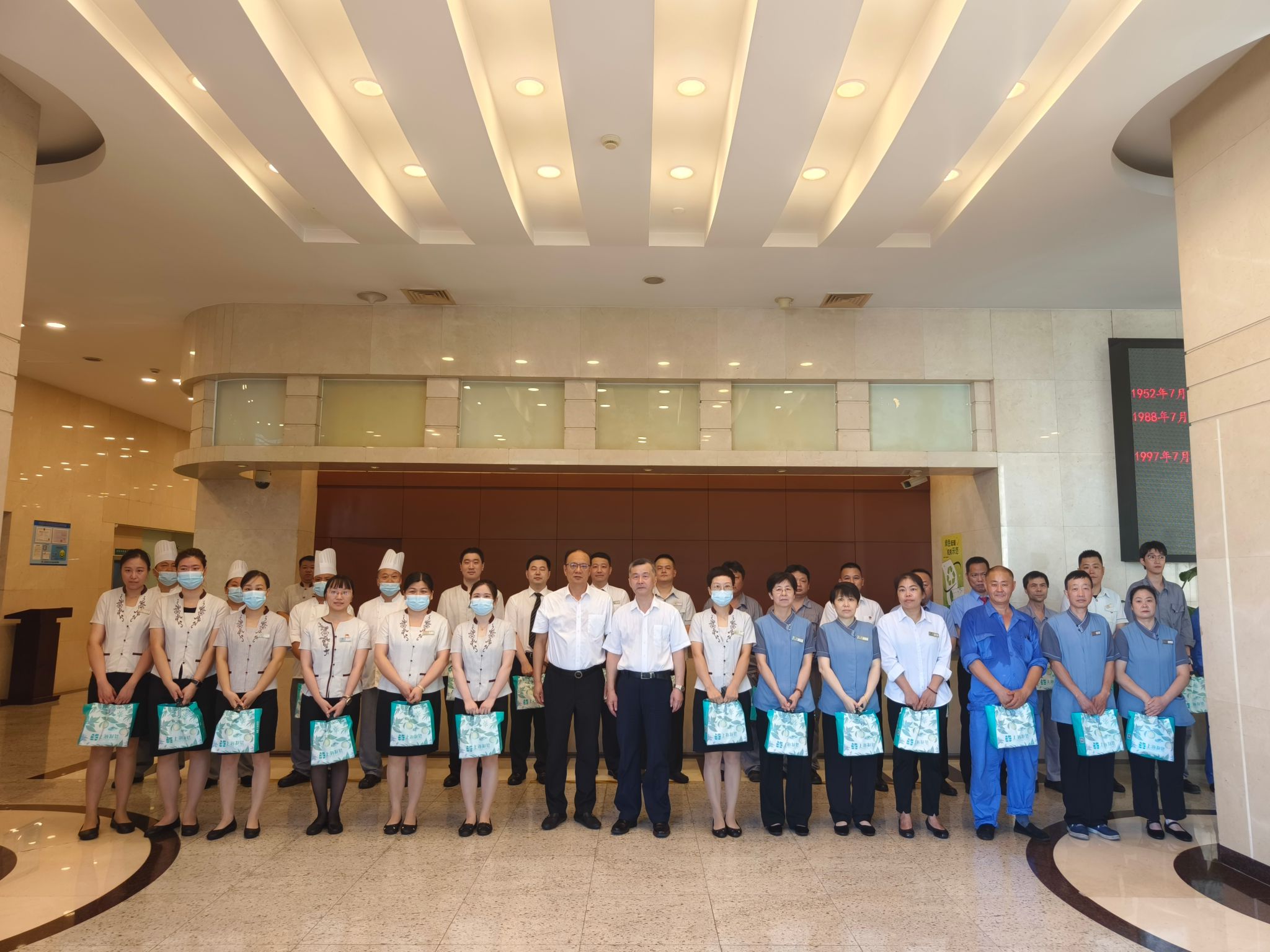 近日正值盛夏时节,为切实做好防暑降温工作,保障一线职工身心健康,校(院)于7月29日组织开展夏季高温慰问送“清凉”活动。副校(院)长李渤带领办公室、党群工作部、工会、后勤保卫处、后勤服务中心等部门负责同志先后走访了收发室、门卫室、上勤楼宇、车队、海泓餐厅、海兴大厦等岗位,看望慰问在高温酷暑下坚守在一线的广大职工,提醒大家劳逸结合,确保身体健康和工作安全,有序完成暑期各项服务保障工作。同时校(院)也为梅陇、淀山湖校区一线职工送上了防暑降温物品。