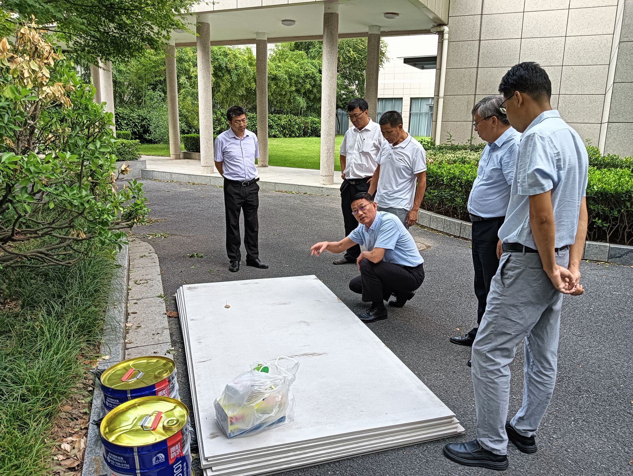 早在台风预警初现端倪之时,校领导便提前部署防汛防台工作,要求后勤保卫处及各服务保障部门事先开展安全检查。后勤保卫处迅速启动应急预案,组织力量对全校进行了拉网式安全隐患排查,特别是对易漏水的区域、树木绿植及关键设施进行了重点防护。沙袋、挡水板、潜水泵提前布置到重点部位,室内漏水点提前放置水桶、布草,大理石及瓷砖地面易滑部位,提前铺设防滑垫。除了在常规漏水点配设布件,还在其他点位加强配置,同时,对高大树木进行了加固处理。一系列精心筹备,为后续的抗台工作奠定了坚实的基础。
