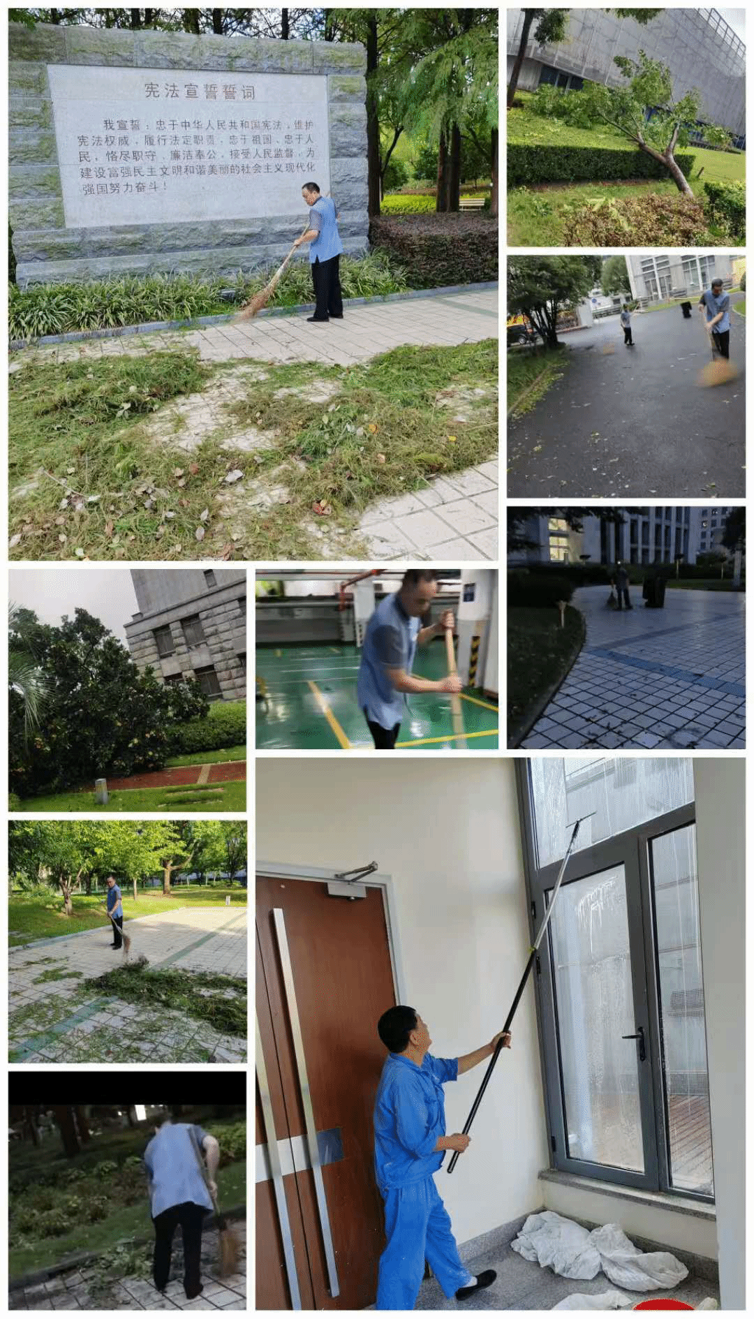 超强台风“贝碧嘉”余波刚平,第14号台风“普拉桑”又接踵而至。在这短暂的窗口期,在校领导亲自挂帅,带领后勤保卫处及各服务保障部门,争分夺秒做好后续恢复工作,修补墙面,封堵漏点,加固树木,清理道路,疏通下水道,检查维修设备,经过一系列紧张而有序的工作,保证中秋节后校园正常有序运行。