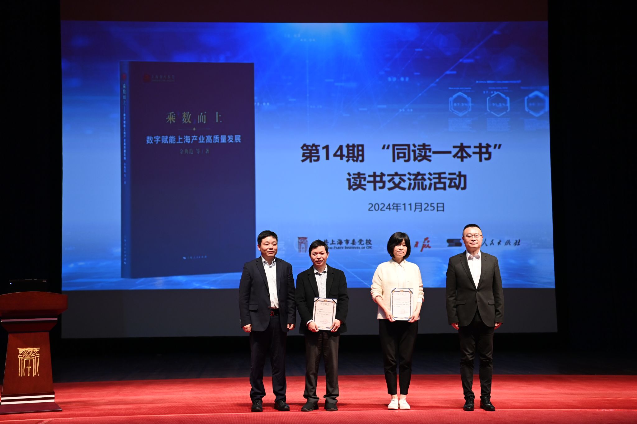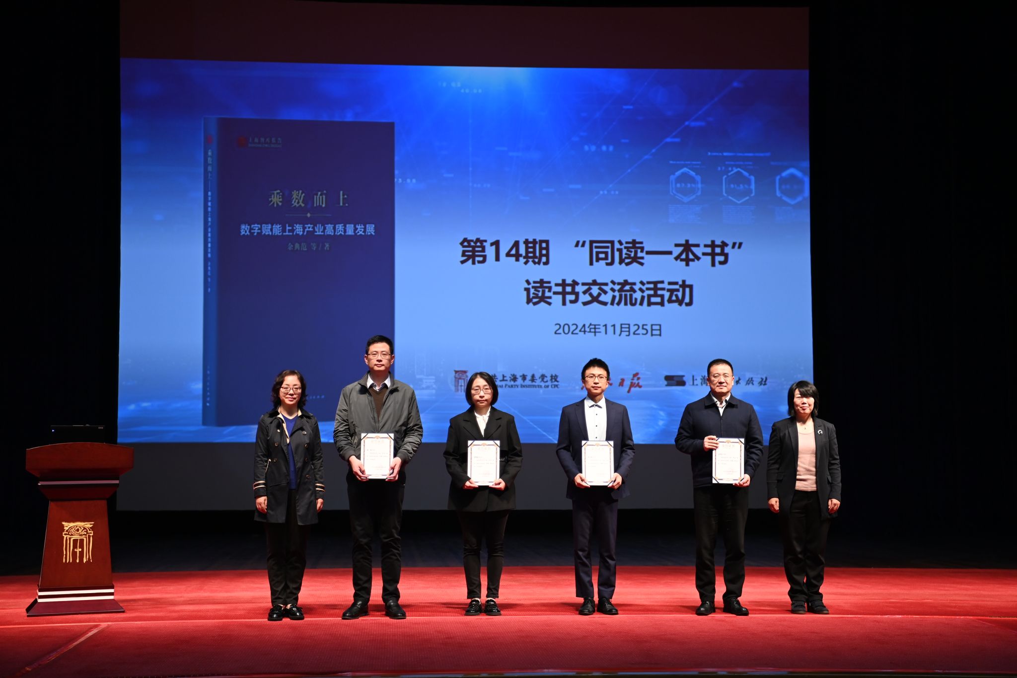 11月25日上午,校(院)举办第14期“同读一本书”读书交流活动。本次读书交流活动选取《乘数而上 数字赋能上海产业高质量发展》一书,特邀该书作者上海财经大学余典范教授出席活动并发表演讲。市委党校副校长戴冰、上海人民出版社副总编辑鲍静、《解放日报》读书周刊编辑王一等出席活动。