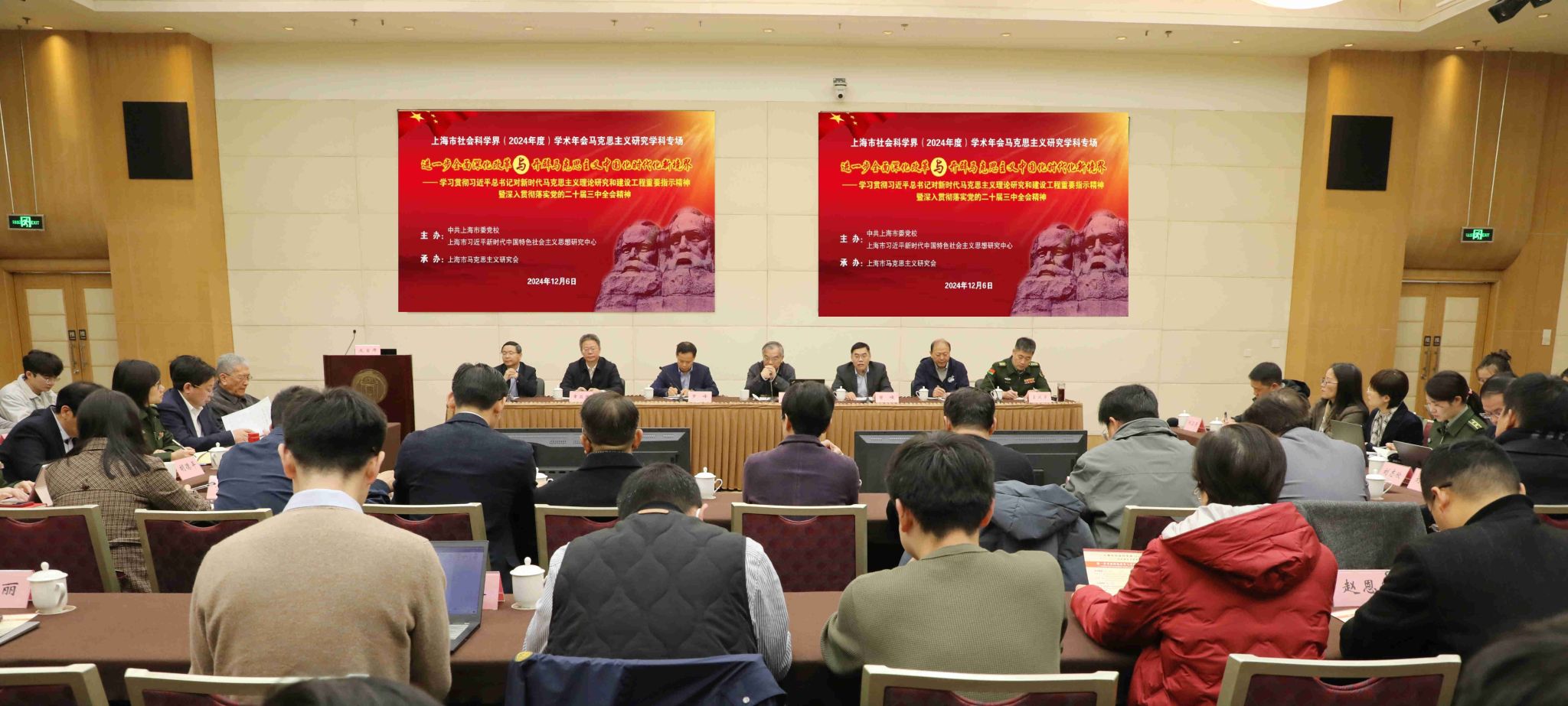 为深入学习贯彻习近平总书记关于新时代马克思主义理论研究和建设工程重要指示精神,深入学习贯彻党的二十届三中全会精神,12月6日上午,由中共上海市委党校、上海市习近平新时代中国特色社会主义思想研究中心共同主办的上海市社会科学界学术年会(2024)马克思主义研究学科专场在市委党校召开,会议主题是“进一步全面深化改革与开辟马克思主义中国化时代化新境界”。中央马克思主义理论研究与建设工程咨询委员、首席专家顾海良教授与会作主旨演讲。上海市委党校常务副校长、上海市习近平新时代中国特色社会主义思想研究中心副主任曾峻教授发表学术致辞。市委党校副校长、上海市习近平新时代中国特色社会主义思想研究中心副主任兼秘书长罗峰教授主持开幕式。