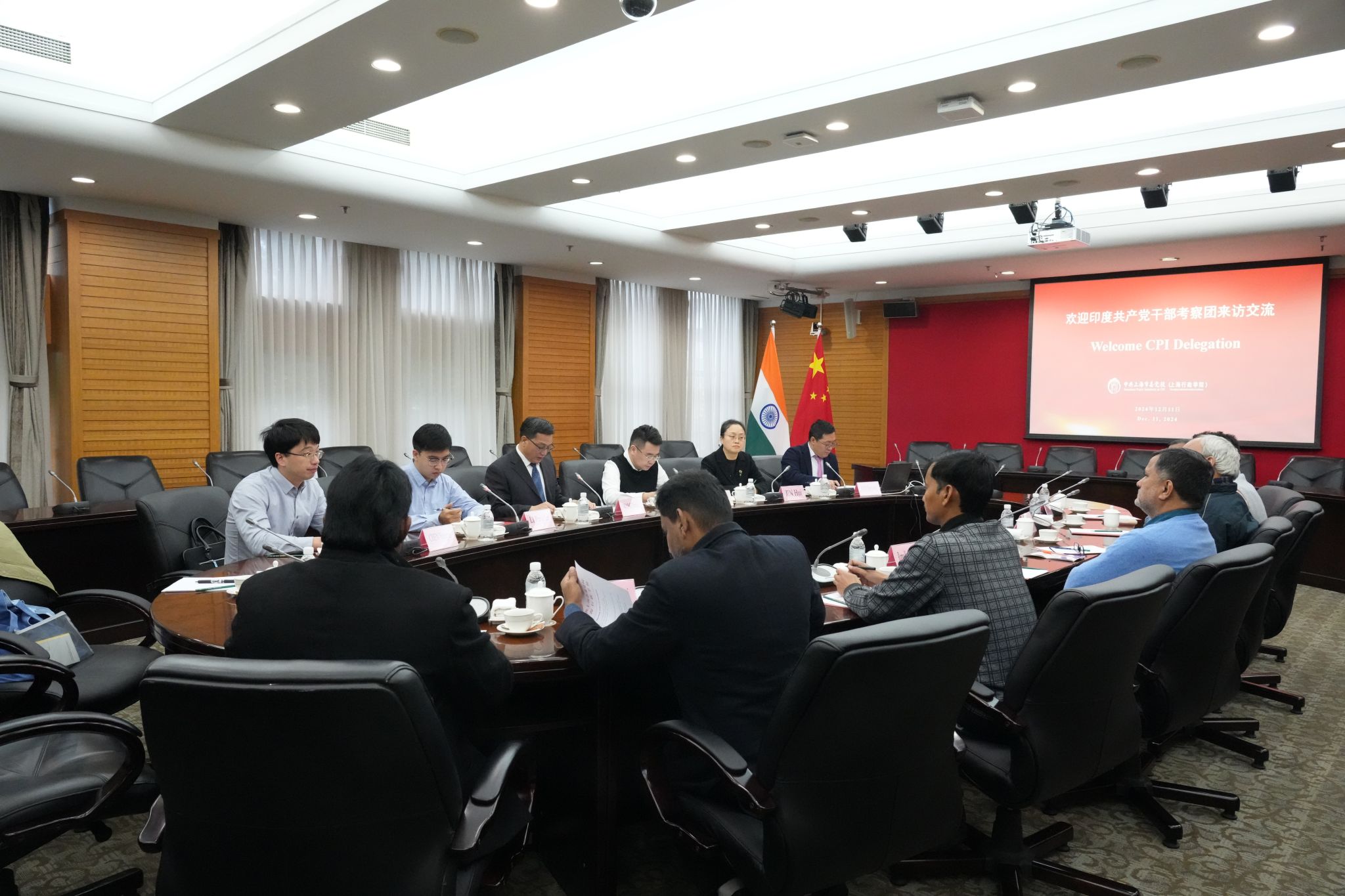 12月11日,印度共产党中央书记处书记潘达率领的干部考察团来访校(院),副校(院)长王永杰主持会见,中联部、市外办、校(院)经济学教研部及外事处有关人员陪同。