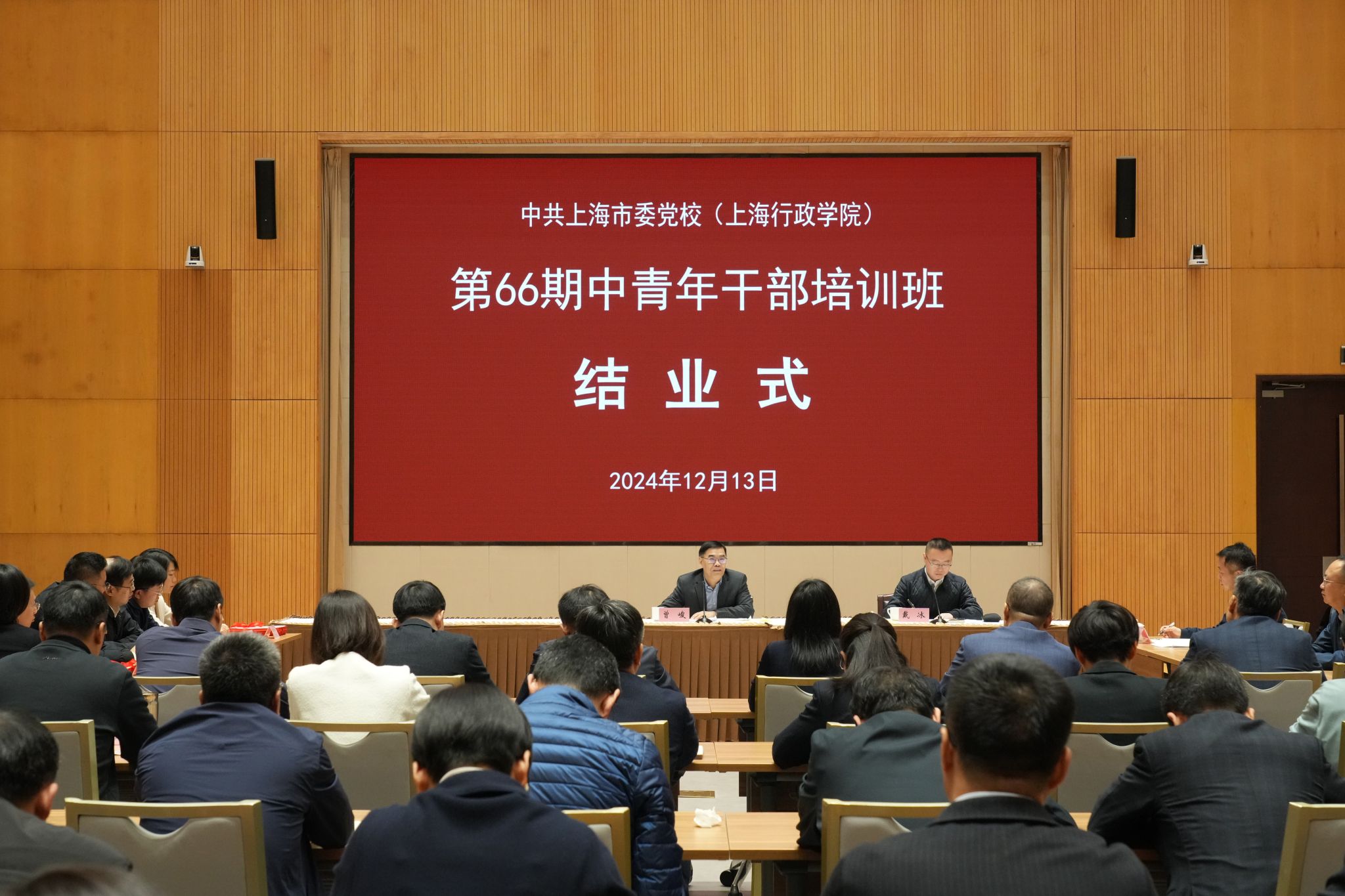 经过三个半月紧张充实的学习,市委党校第66期中青年干部培训班顺利结业。市委党校常务副校长曾峻出席结业式并讲话,市委党校副校长戴冰主持,市委组织部干部教育处处长孟晓东出席结业式。