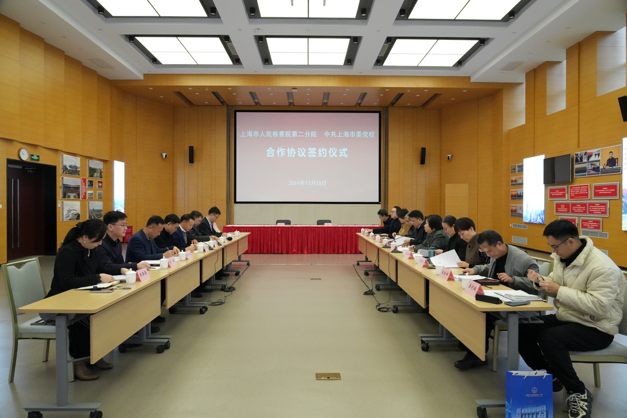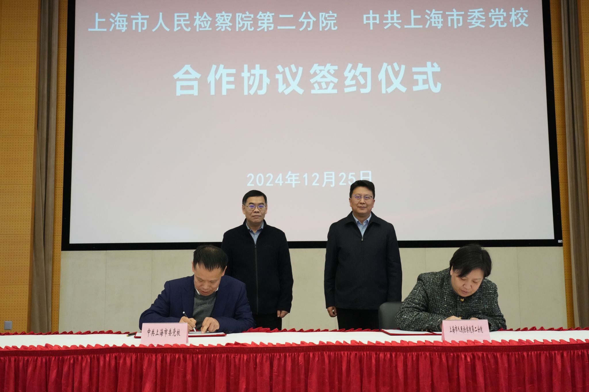 为学习贯彻习近平法治思想,持续推进政治建设与法治建设融合发展,12月25日上午,市委党校与市人民检察院第二分院签署合作协议。市人民检察院第二分院检察长陶建平,政治部主任顾莺,检委会专职委员谈剑秋,市委党校常务副校长曾峻,副校长罗峰出席签约仪式。双方相关部门负责同志参加仪式。