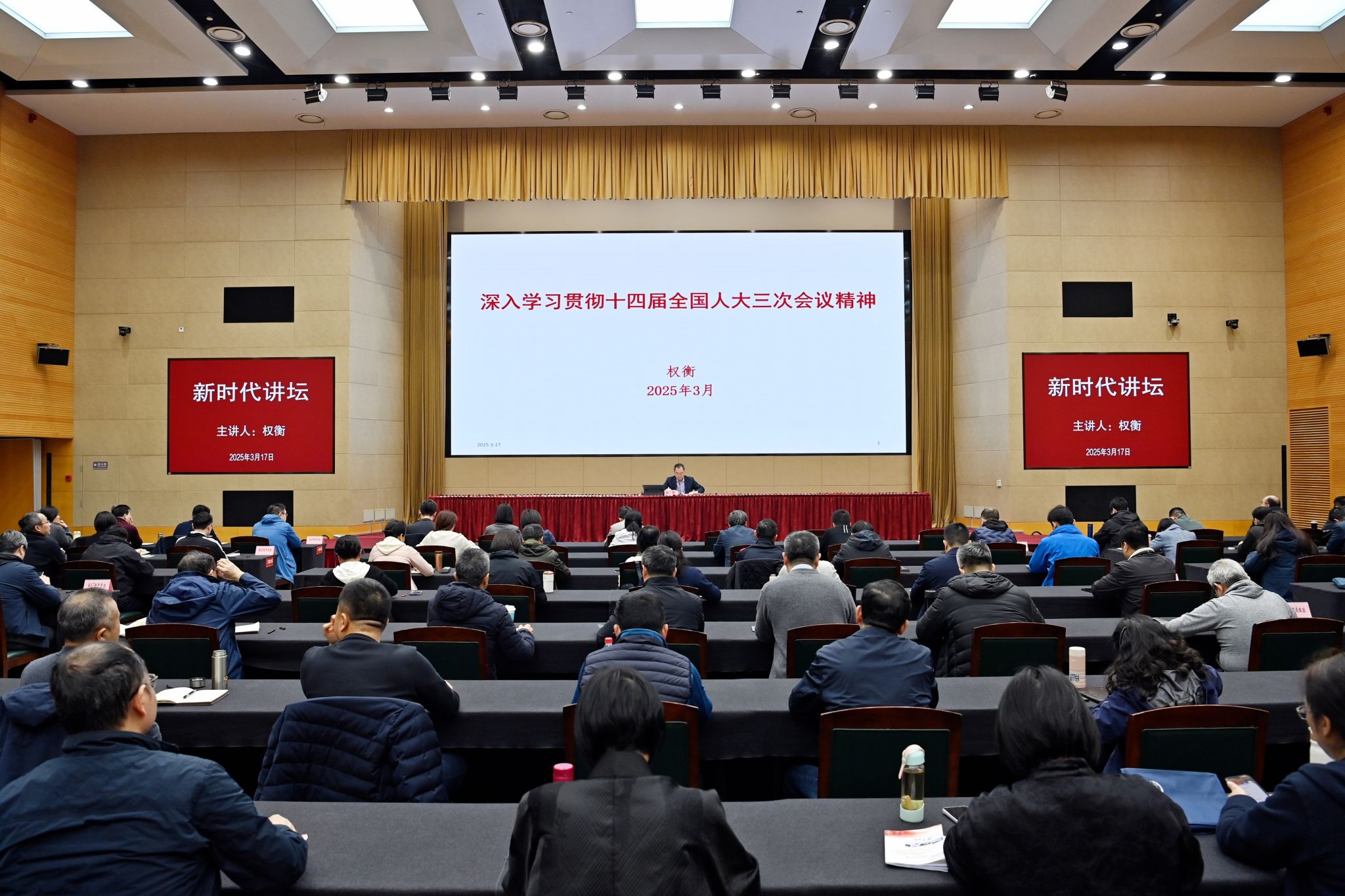 3月17日晚,市委宣传部副部长权衡来校(院)主讲新时代讲坛,解读全国两会精神。