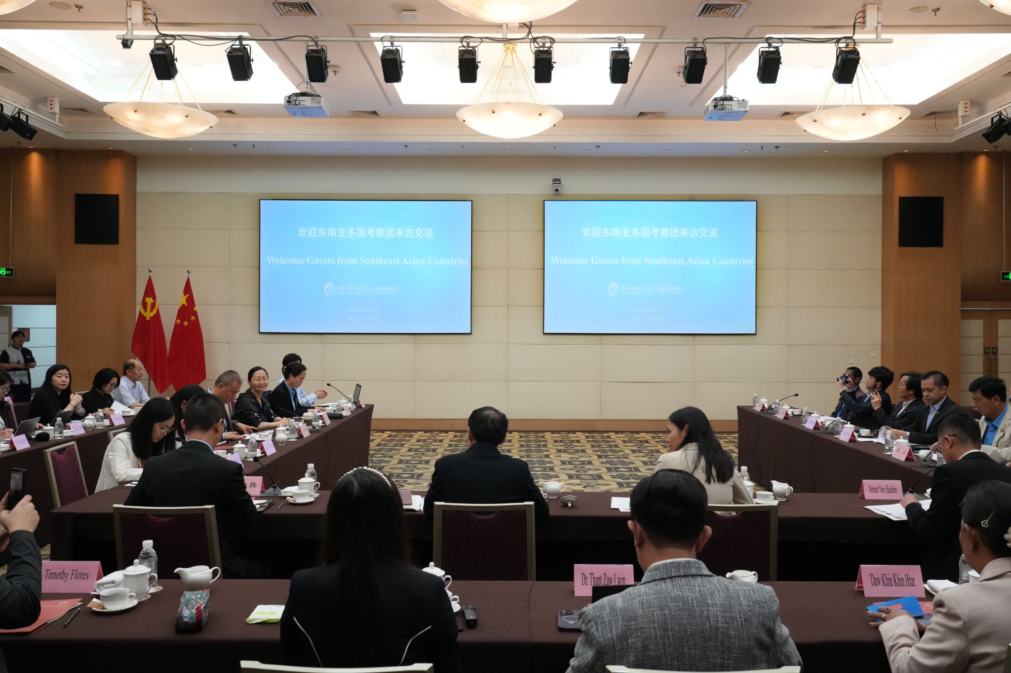 5月23日,马来西亚民主行动党副主席、政府通信部副部长张念群率领东南亚多国考察团到访我校。考察团由来自马来西亚、文莱、印度尼西亚、缅甸、菲律宾、新加坡、泰国、东帝汶等“一带一路”沿线国家的政党政要、学者和媒体代表组成。副校长罗峰主持会见交流。
