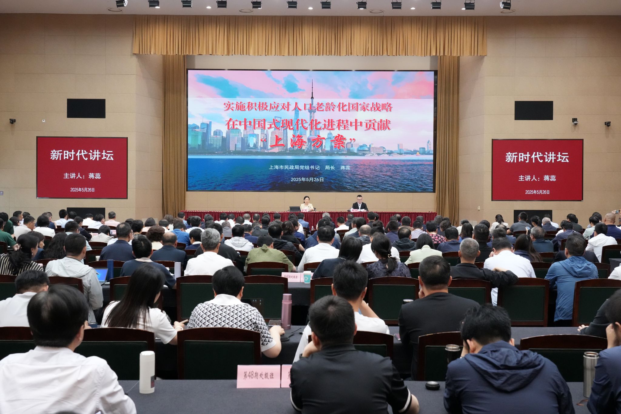 5月26日,市民政局党组书记、局长蒋蕊受邀来校主讲新时代讲坛,作“实施积极应对人口老龄化国家战略 在中国式现代化进程中贡献上海方案”专题报告。副校长戴冰主持报告会。