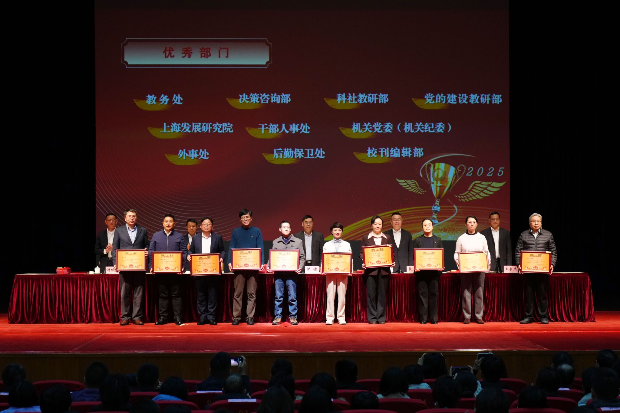 会上,校委领导向荣获2025年度部门考核优秀奖等奖项的部门、个人和“服务之星”颁发奖状和证书。四位教职工代表作交流发言。