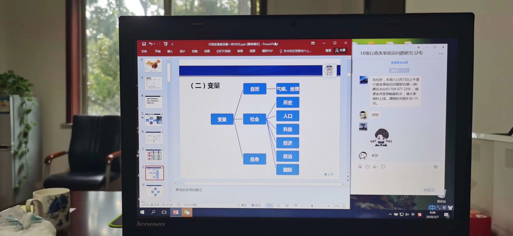 三是开展在线教育。研究生部广泛听取师生意见,2月初即着手全面开展在线教学的各项准备,自3月2日起,学术型研究生和MPA研究生全面启用网络教学。在确定网络教学平台后,经过反复测试使用,承担研究生教学任务的教师不断转变教学观念,提升在线教学能力。目前学术型研究生每周进行实时线上教学20余门课程,参与学生50余人。MPA研究生8门课程均建立专属教学群,师生联系更加紧密,便于反馈网络教学问题,确保教学质量。除网络教学平台外,任课教师和导师通过微信、QQ、电邮、电话等方式与研究生进行互动指导,研究生部对研究生听课、学习和科研情况进行督导。对于没有网络上课条件的研究生,研究生部及时做好课件整理、课程录音资料发送等助学工作,确保不让一人掉队。