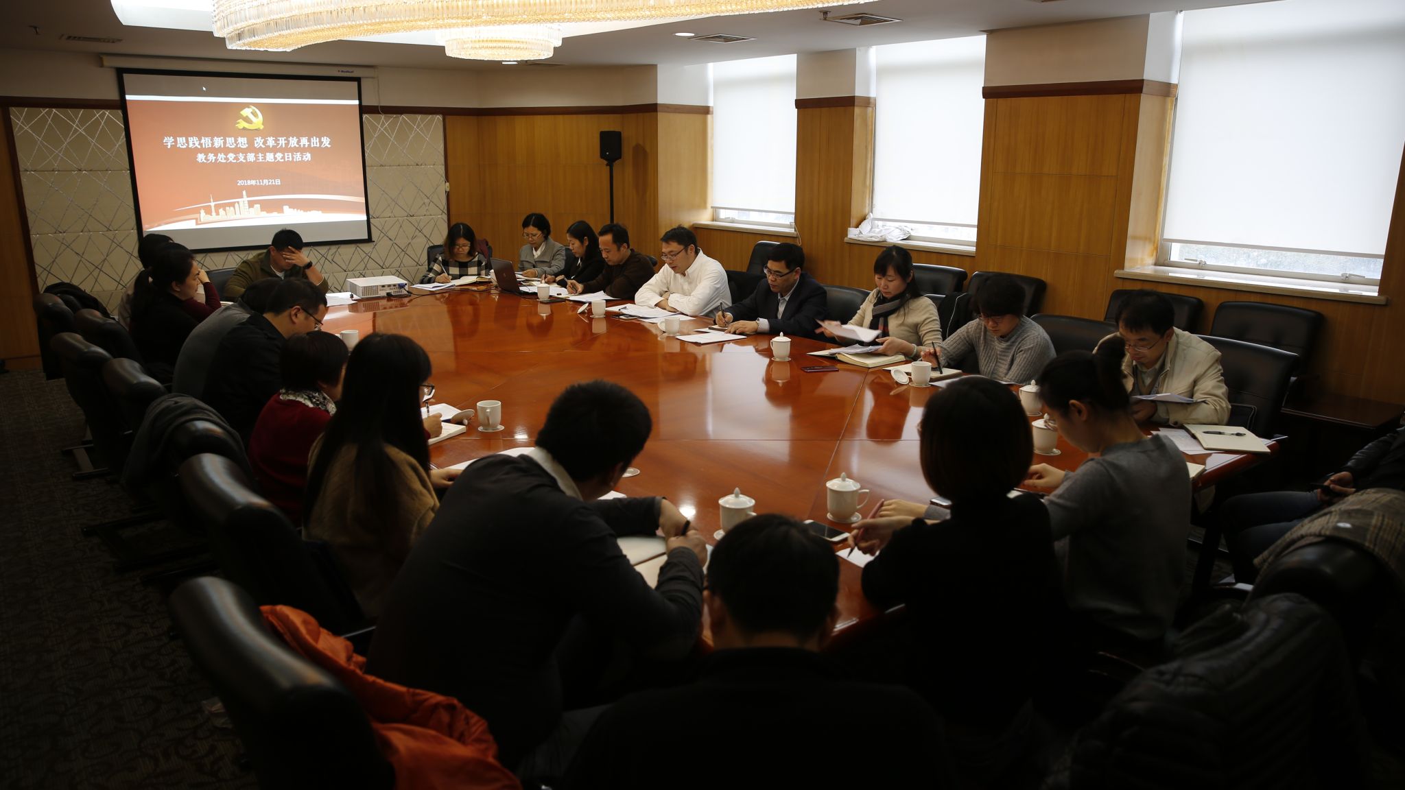 聆听传达知深意。11月13日上午,校院召开全体教职工大会,常务副校院长沈炜传达学习习近平总书记在首届中国国际进口博览会开幕式上的主旨演讲和考察上海时的重要讲话精神,并对做好贯彻落实工作进行动员部署。教务处党支部组织党员认真聆听,并要求党员同志们结合工作加以落实,做到有深化、有推动、有效果。
